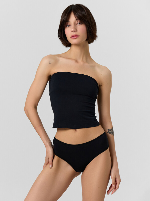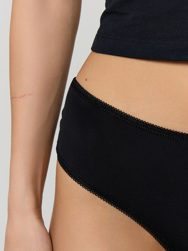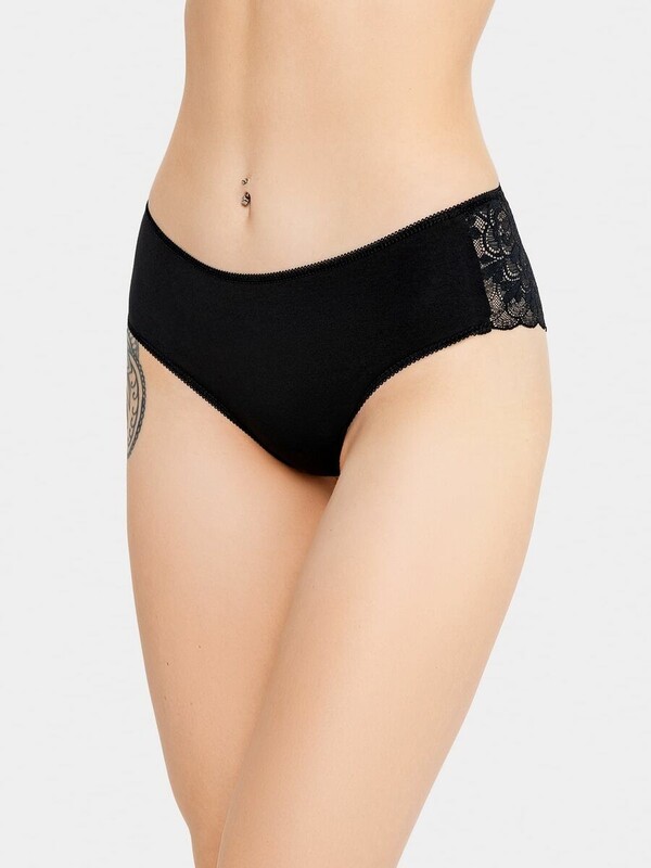 Качественные и комфортные трусики-шорты из трикотажного полотна. Линия талии классическая. На верхнем срезе трусиков и по ножкам – тонкая эластичная тесьма. Задняя деталь выполнена из элегантного полупрозрачного кружева. Комфортный вариант на каждый день!