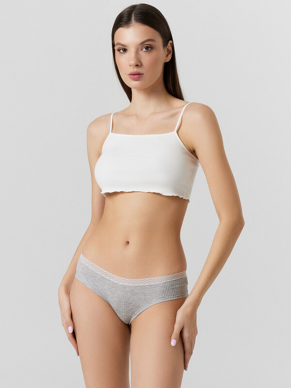 Стильные трусы-шортики, выполненые из вискозы. Линия талии классическая. Верхний срез обработан декоративной тесьмой, нижние – швом вподгибку. Фактура полотна в рубчик (рибана) придает особый шарм повседневному белью.