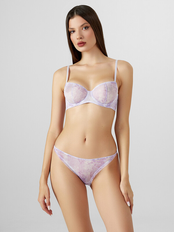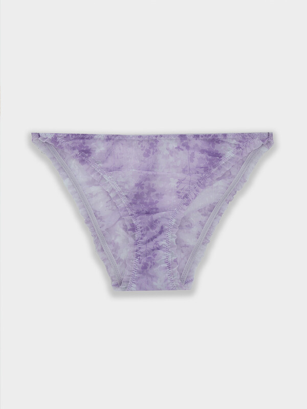 Трусы женские со средней посадкой силуэта «слип». Передняя и задняя детали цельные, выполнены из эластичной сетки, соединены между собой по бокам через кольцо диметром 8 мм. Подкладка ластовицы из кулирного полотна отлетная по переднему краю.