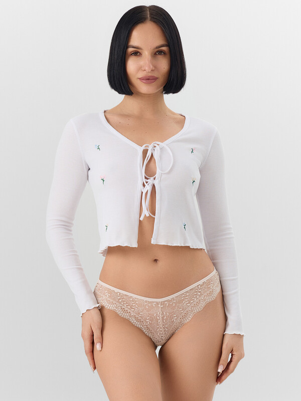 Женские трусы-бразилиана из эластичного кружева и мягкого трикотажа – идеальный выбор для подчеркивания женственных форм. Эти кружевные трусы с V-образным вырезом сочетают в себе женственность и повседневный комфорт. Модель выполнена из дышащих материалов, которые не раздражают кожу и сохраняют форму после множества стирок.