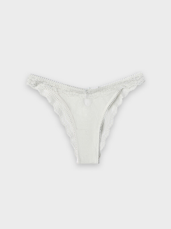 Трусы женские, силуэт - слипы, выполнены из кружевного полотна с эластичным узким кружевом. Передняя деталь цельная, сверху декорирована узким кружевом Antik Dantel арт.4063 L-120 -3,4cм (по центру шов). Подкладка ластовицы из основного полотна, отлетная по верхнему срезу. Задняя деталь цельнокроенная из кружевного полотна, декорирована эл. узким кружевом по ножкам. по центру декоративное отверстие с бантиком арт 6737-0107G размер 30*20 мм.