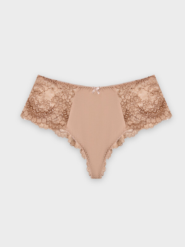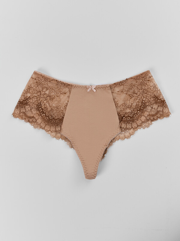 Трусы женские,бразилиана. Передняя центральная деталь выполнена из кулирного полотна . Боковые части передней детали выполнены из кружева 22см. Верхний срез трусов обработан эл.тесьмой 10мм ( с/з 10 мм, KTE7-10, Артекс E7116). Подкладка ластовицы выполнена из кулирного полотна, отлетная по переднему срезу. Бантик по заданию.