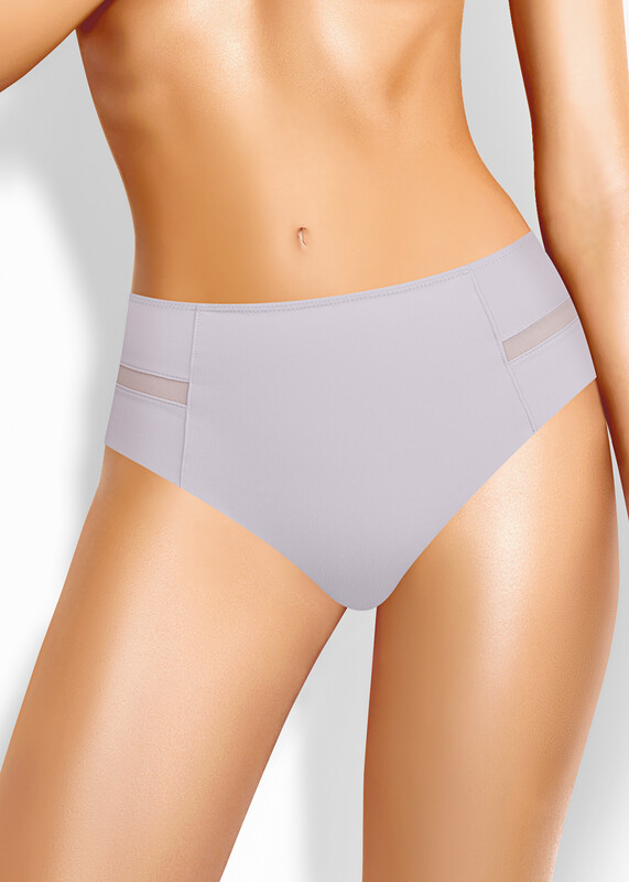 Производитель: Clever Трусы бразилиана с завышенной посадкой, сзади и сбоку бесшовная гладкая обработка, спереди декоративные горизонтальные вставки из плотной сетки, перед дублирован сеткой, по талии обработка с зигзагом и узкой резинкой