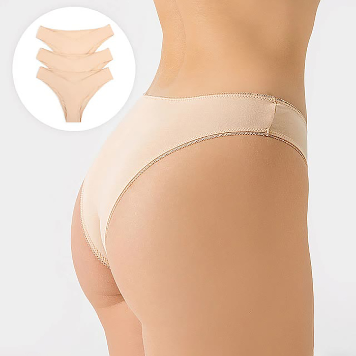 Габариты: 18 x 14 x 1,5 Страна: Беларусь В боксе: 6 набор Состав: Хлопок 95%, эластан 5% Материалы: хлопок, эластан Фасовка: по 1 набор Сертификат: ЕАС Набор: Да Цвет: Бежевый Для кого: Для женщины В наборе, шт.: 3 Тип посадки: Средняя Модель трусов: Бразилиана Состав ткани: Хлопок, Эластан Фиксированная цена: Да Комментарии к товару