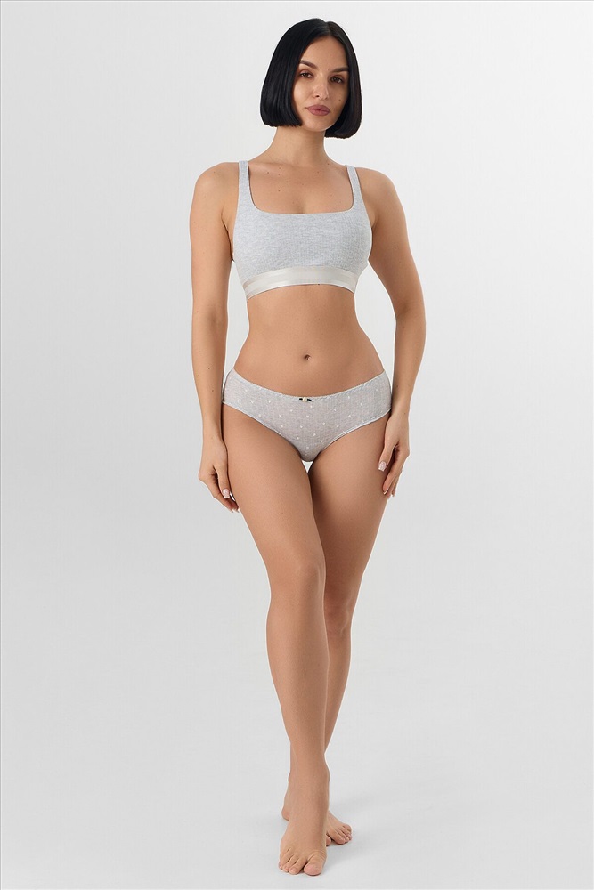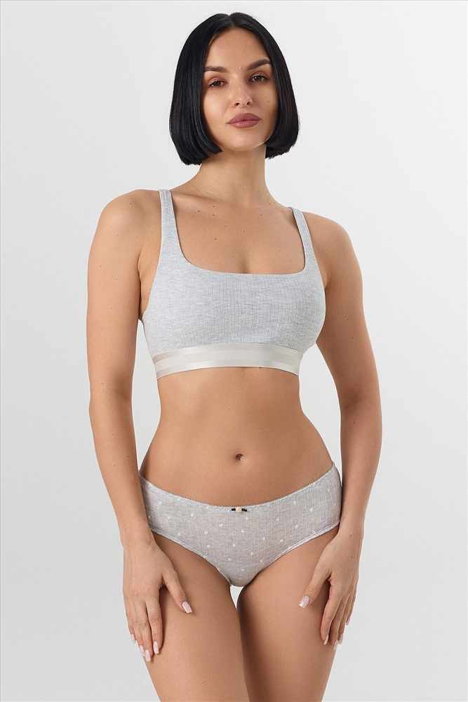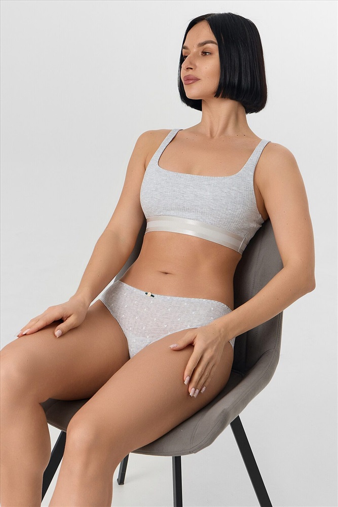 Трусы женские шорты со средней посадкой из рибаны. Передняя деталь цельная. Задняя деталь со средним швом, по ножкам узкое кружево шириной. Нижняя ластовица отлетная по переднему срезу, выполнена из кулирной глади. По талии тесьма эл с зубом настрочена на 4-укольном зигзаге.. Ножки обработаны на плоскошовной машине без эластичной тесьмы.