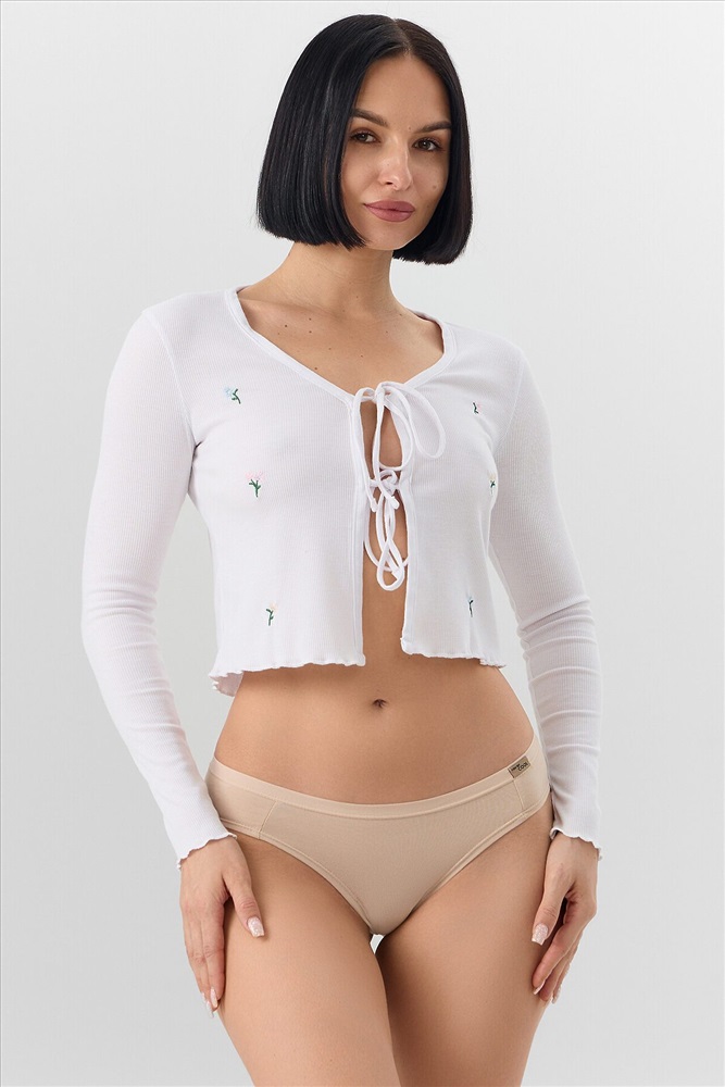 Трусы-бразилиана — нежный и практичный вариант для повседневной носки. Модель с заниженной линией талии выполнена из натурального хлопка, который обеспечивает воздухообмен и комфорт в течение всего дня. Тонкая эластичная тесьма по верхнему срезу мягко фиксирует трусики, не оставляя следов на коже даже при длительном ношении.