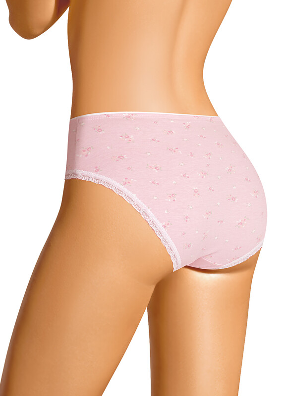Трусы слипы женские из эластичного хлопкового полотна. Обработка краев по талии - резинка с кантом, по ноге - узкое кружево. По переду сборка на резинку, атласный бант.