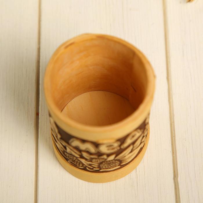 Страна: Россия В боксе: 25 шт Состав: Береста Материалы: береста Фасовка: по 1 шт Индивидуальная упаковка: полиэтиленовый мешок Габариты товара: 6 см × 6 см × 9,5 см Сертификат: Не подлежит сертификации Набор: Нет Цвет: Коричневый Форма: Цилиндрическая Объём, л: 0,24 В наборе, шт.: 1 Тематика: Кухня, Цветочно-растительная Рисунок: Да Крышка: Да Материал крышки: Дерево Тематика праздника: Универсальная тематика, 8 Марта Вид дерева: Берёза Материал: Береста Из натурального дерева: Да Покрытие: Воск Герметичная крышка: Нет Тип нанесения рисунка: Тиснение Можно мыть в посудомоечной машине: Нет Текстура: С рельефом Назначение: Для меда Особенности: Без особенностей Фиксированная цена: Да Туес из бересты – практичный и лаконичный выбор для вашей кухни! Изделие выполнено из экологически чистого сырья, которое идеально подходит для хранения продуктов. Береста является природным антисептиком и прекрасно впитывает влагу. Продукты в такой посуде дольше сохраняют свою свежесть и вкусовые качества, в ней не заводятся насекомые и не размножаются бактерии. Изготовлено из натуральной коры берёзы вручную российскими мастерами. ДополнительноПравила ухода за берестяными изделиями: