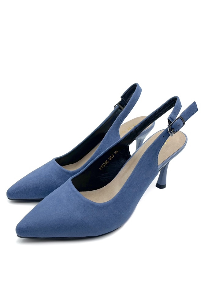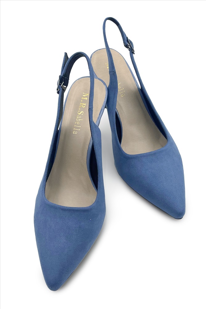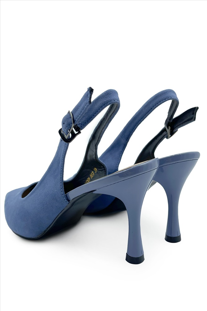 Туфли-слингбэки замшевые на талированном каблуке голубые