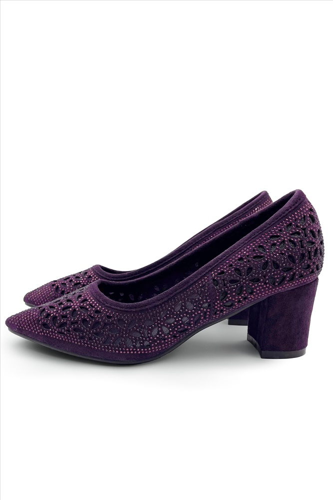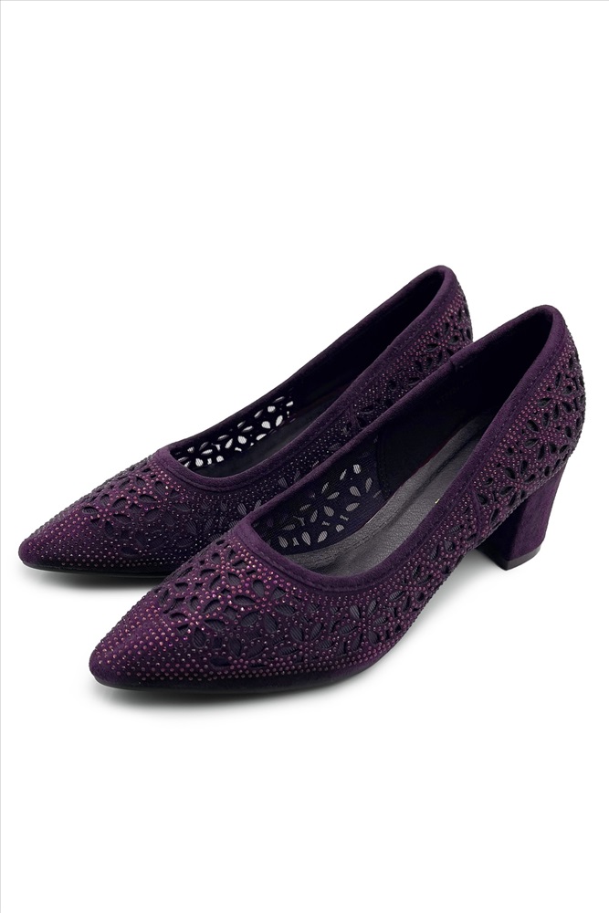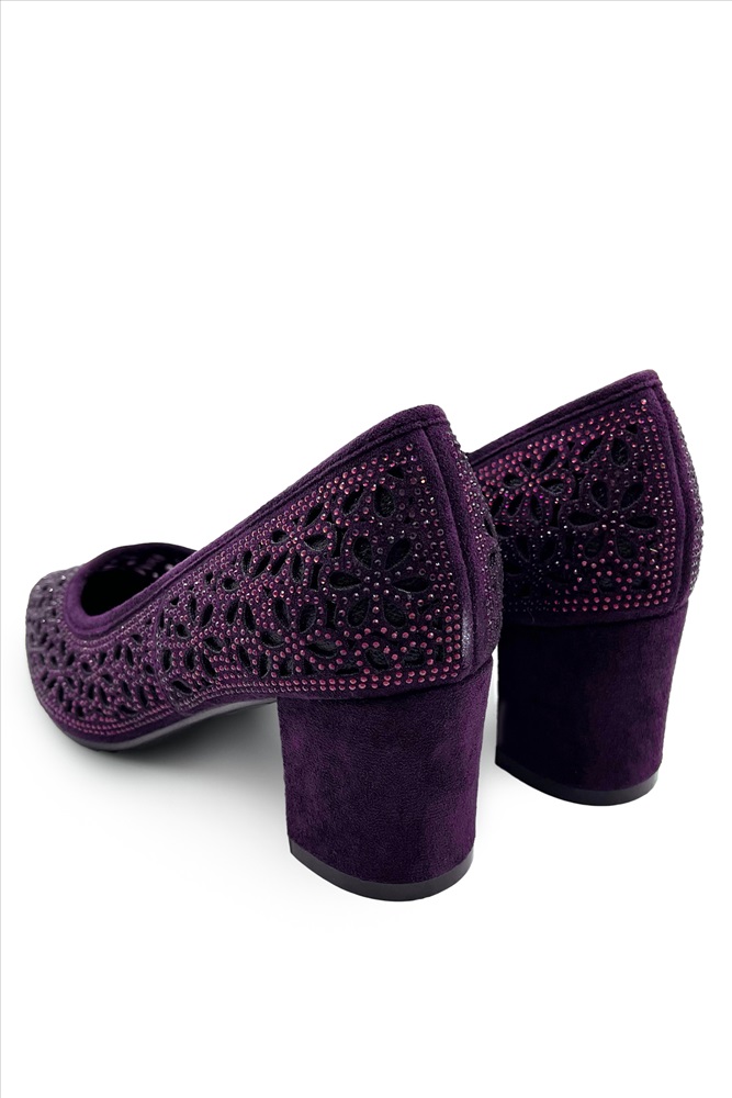 Туфли с перфорацией со стразами баклажан