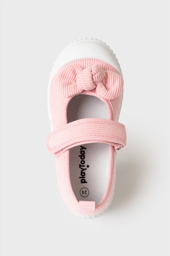 Текстильные туфли для девочки. Туфли из вельвета. Удобная возвратная липучка позволяет ребенку обуваться самостоятельно. В обуви используется текстильная 100% хлопковая подкладка, которая обладает высокой гигроскопичностью. Съемная стелька из свиной натуральной кожи имеет анатомический элемент для поддержания свода стопы. Облегченная подошва из ПВХ гибкая, не скользит и устойчива к истиранию.