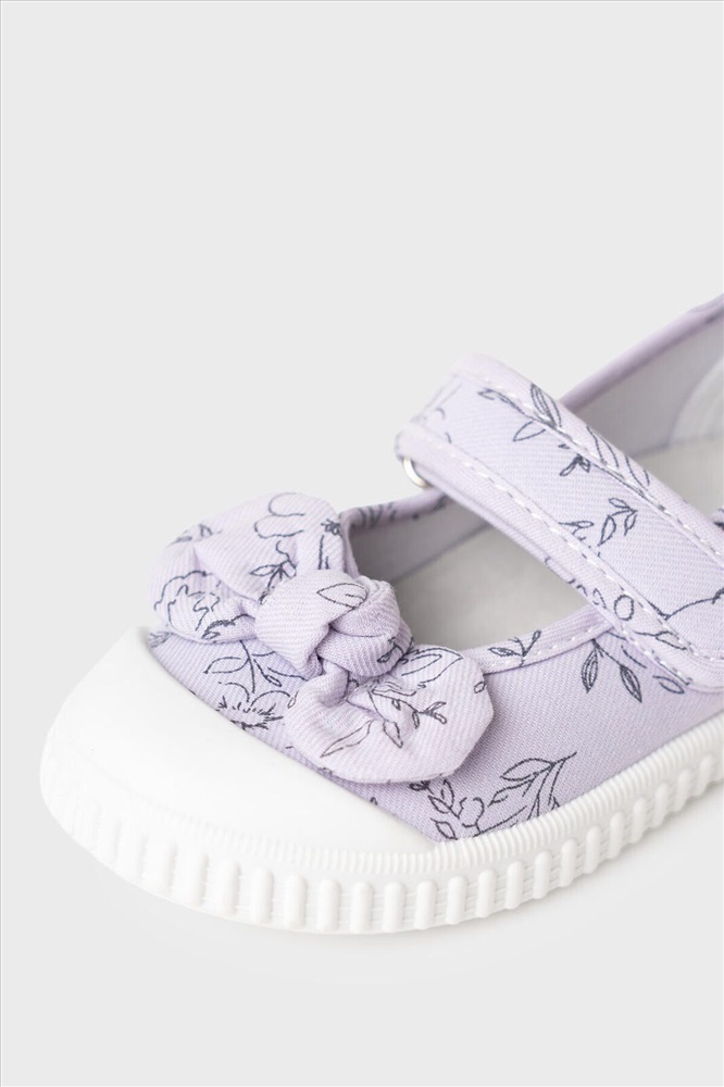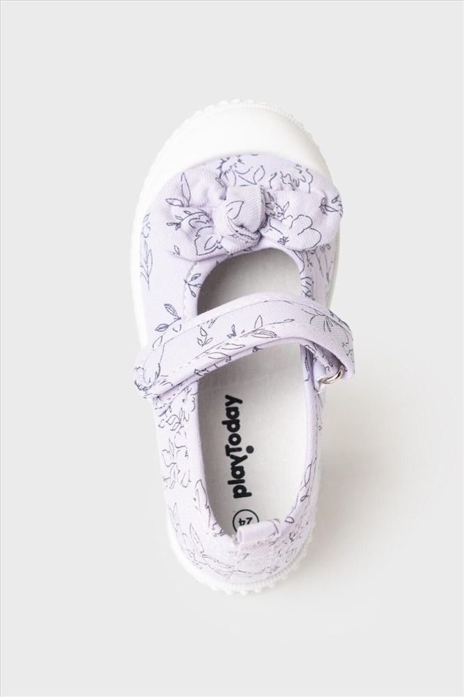 Текстильные туфли для девочки. Туфли выполнены в стиле Прованс. Удобная возвратная липучка позволяет ребенку обуваться самостоятельно. В обуви используется текстильная 100% хлопковая подкладка, которая обладает высокой гигроскопичностью. Съемная стелька из свиной натуральной кожи имеет анатомический элемент для поддержания свода стопы. Облегченная подошва из ПВХ гибкая, не скользит и устойчива к истиранию.