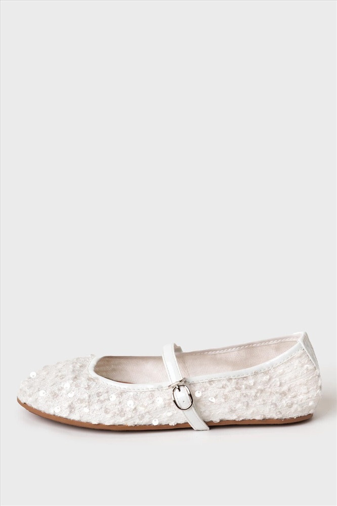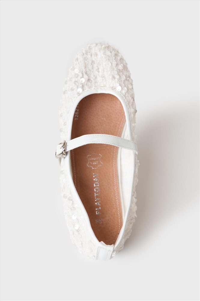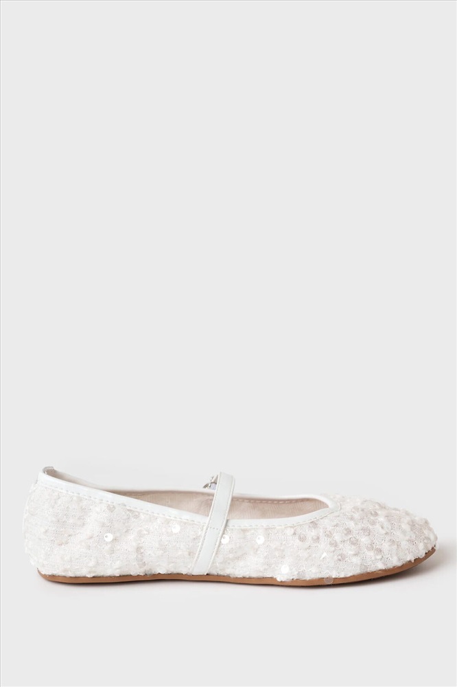 Нарядные балетки с пайетками украсят как повседневной образ, так и будут прекрасным дополнением к нарядному платью. Туфли выполнены из дышащего текстиля без подкладки. Стелька - натуральная ламинированная свиная кожа. Балетки имеют чересподъемный ремешок. Пряжку не надо расстёгивать, она удобно закрывается на крючок. Туфли имеют очень легкую и гибкую резиновую подошву.
