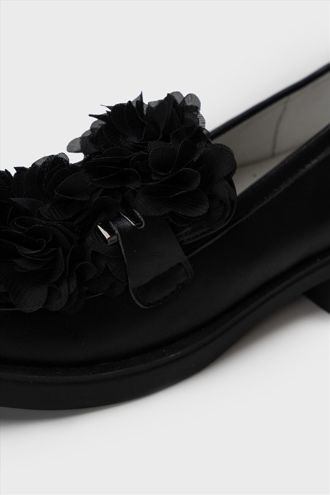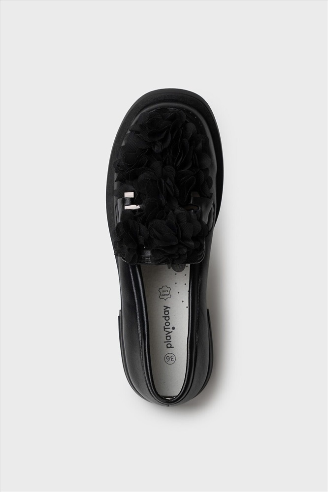 Школьные туфли для девочки подростка с оригинальным оформлением многослойными цветами из сетки. Верх обуви выполнен из искусственной кожи. Лоферы декорированы металлической фурнитурой. Подкладка и стелька - 100% натуральная кожа. Кожаная стелька с анатомическим элементом обеспечивает правильную нагрузку на стопу. Высота каблука 3 см - очень комфортная для повседневной носки. Формоустойчивый задник поддерживает стопу в правильном положении. Подошва из ТПР гибкая и обладает хорошими износостойкими свойствами. Туфли для девочки школьницы отлично подойдут как сменка в школу, для праздника, а также для прогулок: весна, лето, ранняя осень.