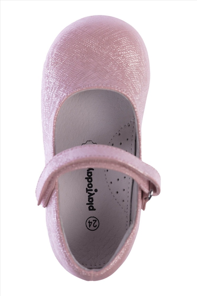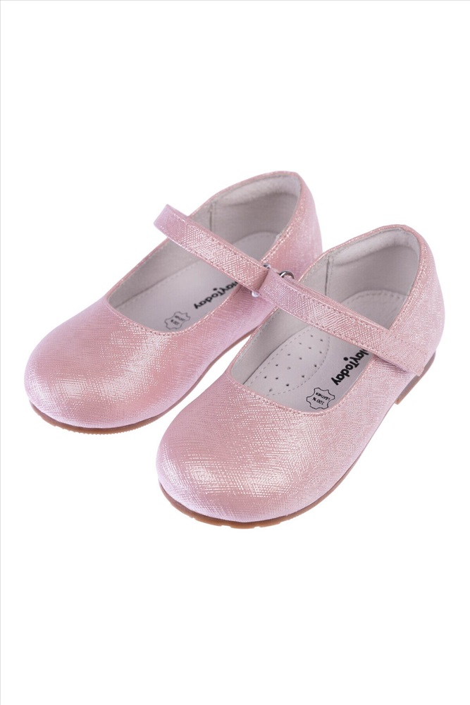 Нарядные туфли из блестящей искусственной кожи. Подкладка выполнена из натуральной кожи. Стелька выполнена из натуральной кожи и имеет анатомический элемент для поддержания свода стопы. Удобная колодка. Подошва из терморезины очень гибкая. Для удобства обувания предусмотрена возвратный ремешок с липучкой. В пяточной части для комфорта предусмотрен мягкий кант.
