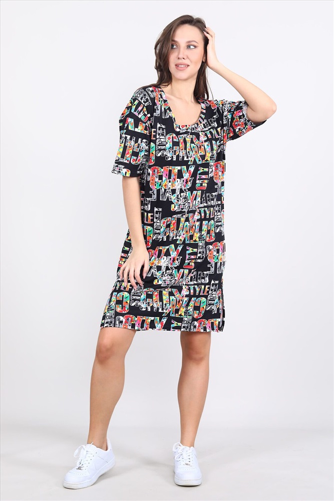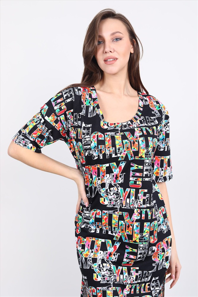 Туника женская, отличный вариант для дома и отдыха. Яркий принт подчеркнет вашу индивидуальность. Снизу по бокам присутствуют разрезы. Свободный крой не сковывает движения, а материал очень приятный к телу.