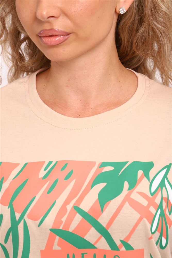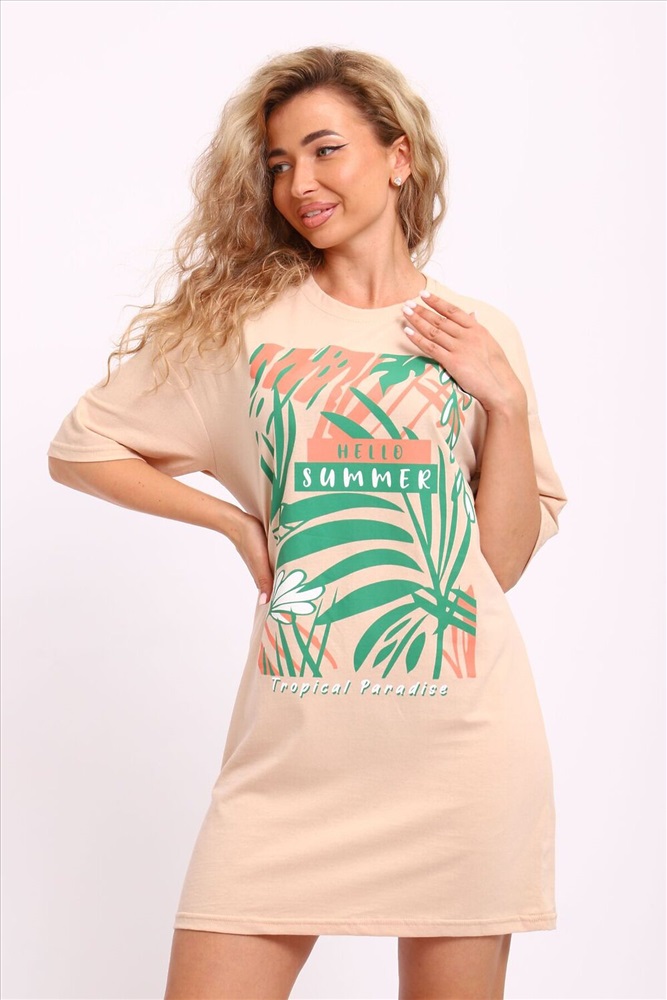 ID товара: 1186952 Состав: Хлопок 100% Сезон: Демисезон Длина: Короткая Фасон: Прямой Рукав: короткие Вырез горловины: Округлый Рисунок: растительный Декоративные элементы: Принт Основная ткань: Хлопок Стиль: Повседневный Вид ткани: Кулирка Страна бренда: Россия Страна производства: Россия Туника женская горловина обтачка, с коротким рукавом и печатью на передней полочке. Комментарии к товару