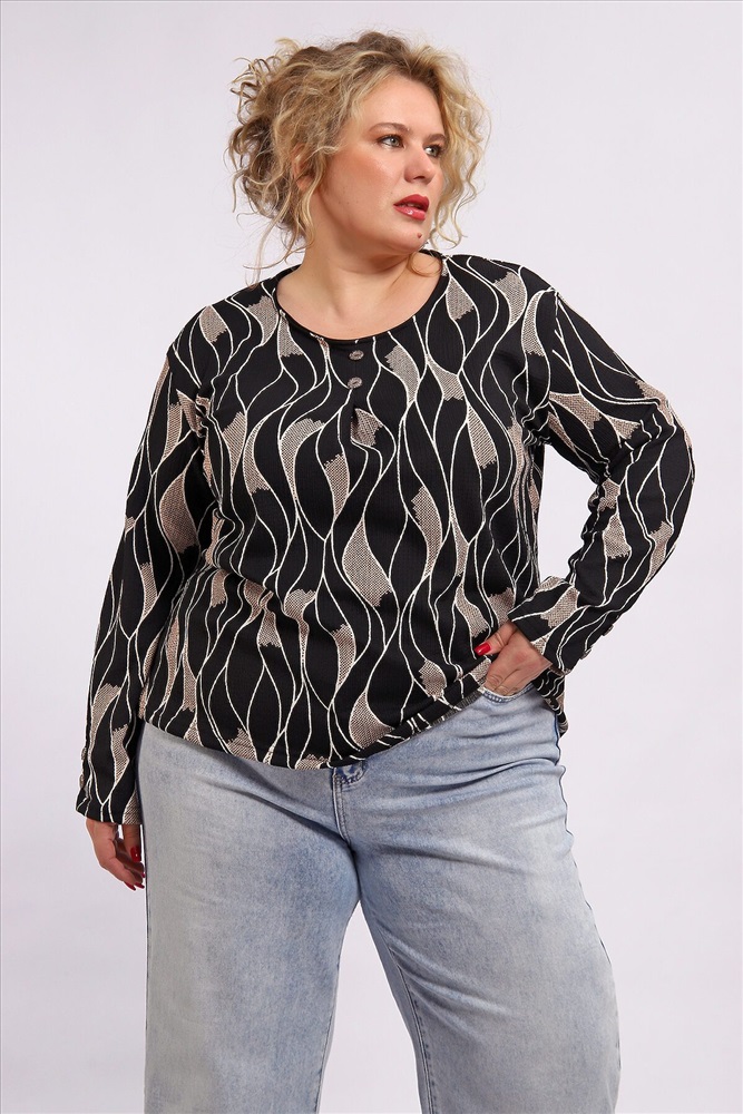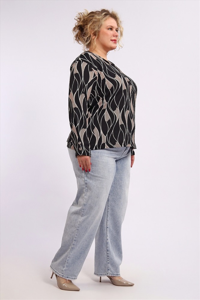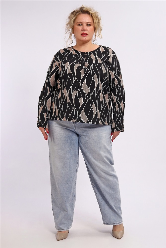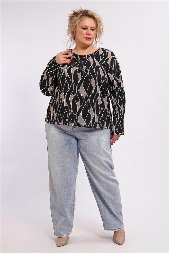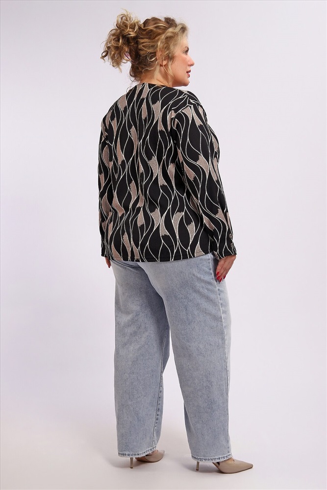 Элегантная блузка из 100 % полиэстера практичная и стильная базовая вещь для повседневного и делового гардероба. Ткань отличается износостойкостью, хорошо держит форму, не мнётся и легко стирается. Контрастное черно‑белое сочетание цвета, создающее выразительный визуальный эффект. Стандартная длина до линии бёдер подходит для сочетания с юбками и брюками.