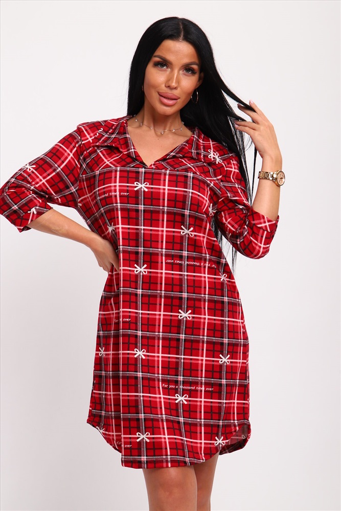 Туника женская полуприлегающего силуэта. Воротник отложной, рукав 3/4.Низ изделия полукруглый.