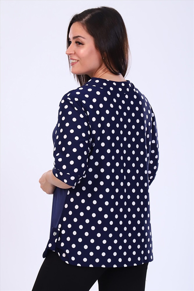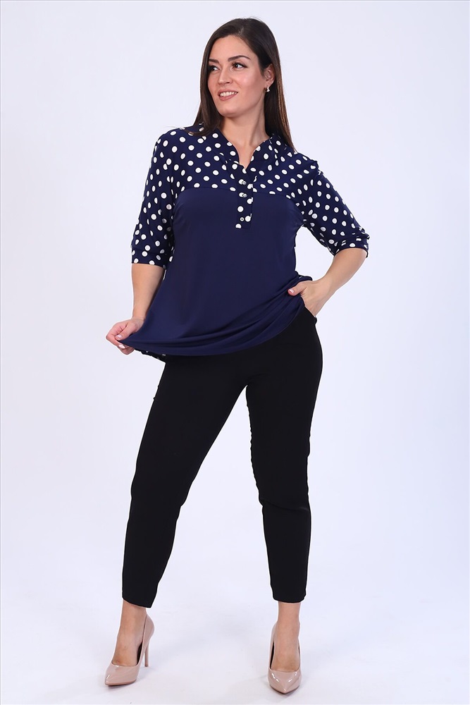 ID товара: 805067 Состав: 92% Полиэстер, 8% Лайкра Сезон: Осень/Зима Длина: Средняя Фасон: Прямой Рукав: 3/4 Вырез горловины: V-образный Рисунок: Горох Декоративные элементы: Принт Основная ткань: Полиэстер | Масло Стиль: Повседневный Страна бренда: Россия Страна производства: Россия Туника прямого покроя подобрана на паты, рукав 3/4 на манжете. Передняя полочка на кокетке, комбинированная в двух цветах, спинка цветная. Удобна, практична. Комментарии к товару