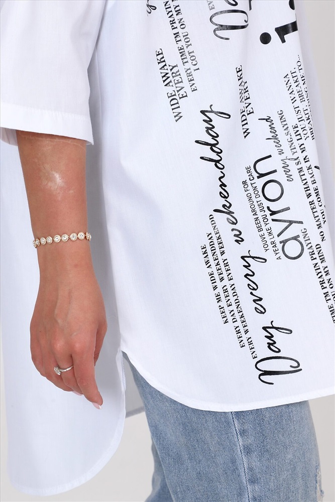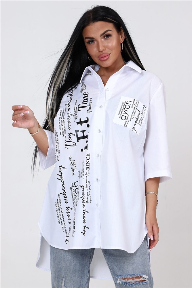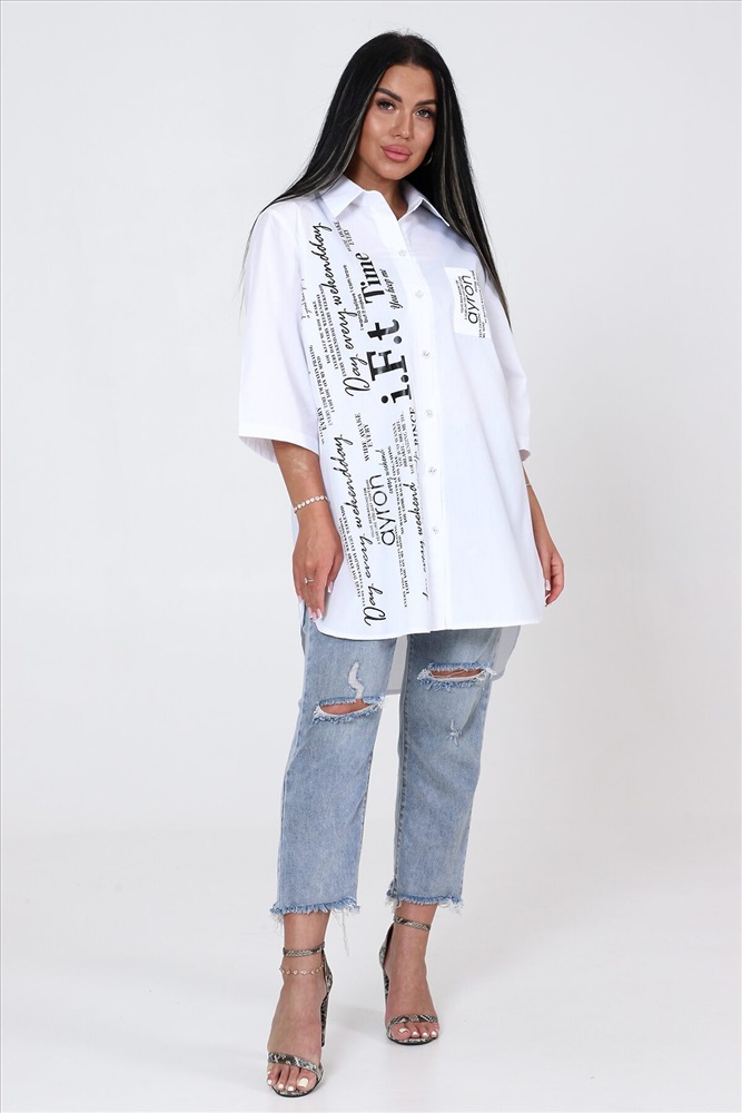 ID товара: 906420 Состав: 60% Полиэстер; 20% Хлопок; 20% Вискоза Сезон: Весна/Лето Длина: Средняя Фасон: Свободный крой Рукав: 3/4 Вид застежки: Пуговицы Вырез горловины: Отложной воротник Рисунок: Надпись Тип карманов: накладной Основная ткань: Полиэстер Стиль: Повседневный Вид ткани: Штапель Страна бренда: Россия Страна производства: Россия Всего одна - две правильно подобранные туники в гардеробе женщины могут эксплуатироваться в совершенно разных образах. С леггинсами, жилетом и балетками туника прекрасно подойдет для повседневного ношения. С джинсами и украшениями в этническом стиле она передаст дух свободы и самобытности, это прекрасный вариант для дружеской вечеринки. С кроссовками и шортами этот предмет гардероба уместен для пикника или прогулки в горы. Удлиненная и перехваченная изящным поясом, дополненная соответствующей бижутерией туника будет уместна для торжественного вечера. Однотонная туника рубашечного кроя, на полочках оригинальные надписи. Спинка изделия длиннее чем перед. Комментарии к товару