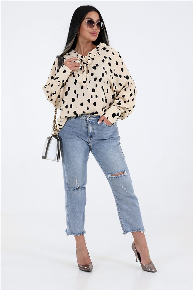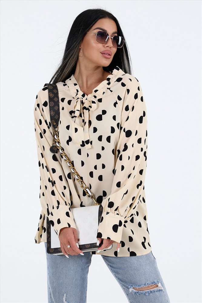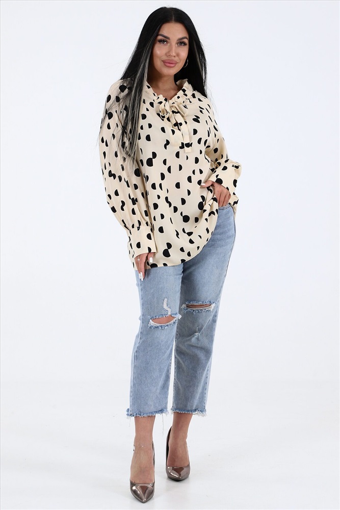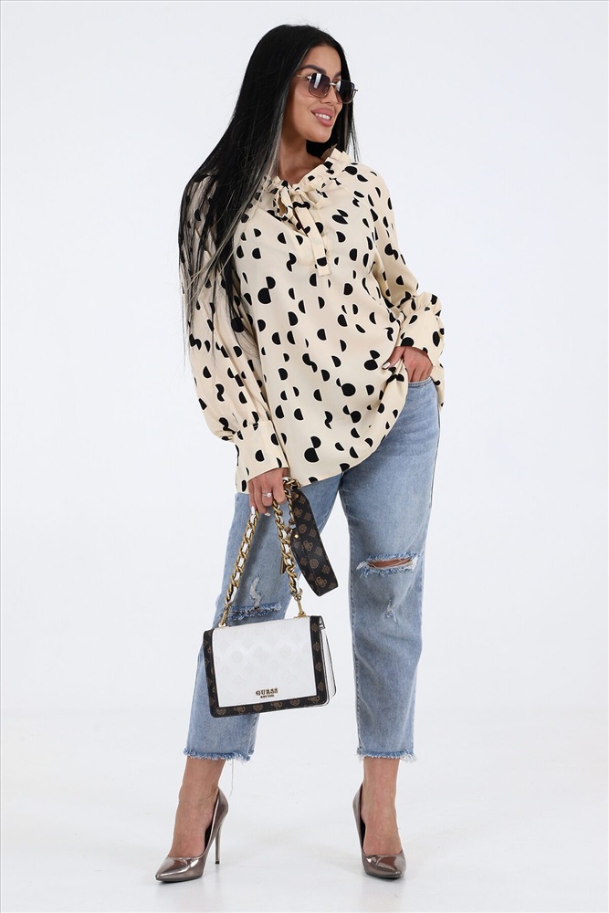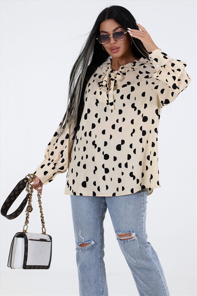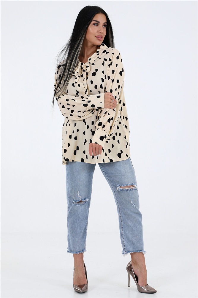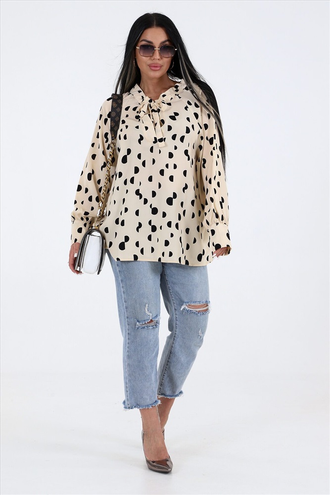ID товара: 1092543 Состав: 90% Полиэстер; 10% Вискоза Сезон: Демисезон Длина: Средняя Фасон: Свободный Рукав: длинные Вырез горловины: Воротник в виде банта Рисунок: Горох Декоративные элементы: Принт Основная ткань: Полиэстер Стиль: классический Вид ткани: Суперсофт Страна бренда: Россия Страна производства: Россия Женская туника из материала софт с оригинальным воротником-стойкой, который затягивается на ленту, представляет собой идеальный выбор для стильных и модных женщин. Ее оверсайз покрой подчеркнет вашу индивидуальность, а длинные рукава на манжете в форме фонарика добавят неповторимости вашему образу. Великолепный рисунок в виде горошка делает эту тунику особенно привлекательной. Наша женская туника доступна в двух элегантных расцветках: черной и бежевой. Такое разнообразие позволяет вам выбрать наиболее подходящий вариант, который сочетается с вашим стилем и настроением. Более того, у нас в наличии широкий размерный ряд от 48 до 58, что позволяет найти идеальную посадку для любой фигуры. Приобретая нашу тунику, вы получаете не только превосходное качество и стильный дизайн, но и комфорт, которые будут сопровождать вас на протяжении всего дня Комментарии к товару