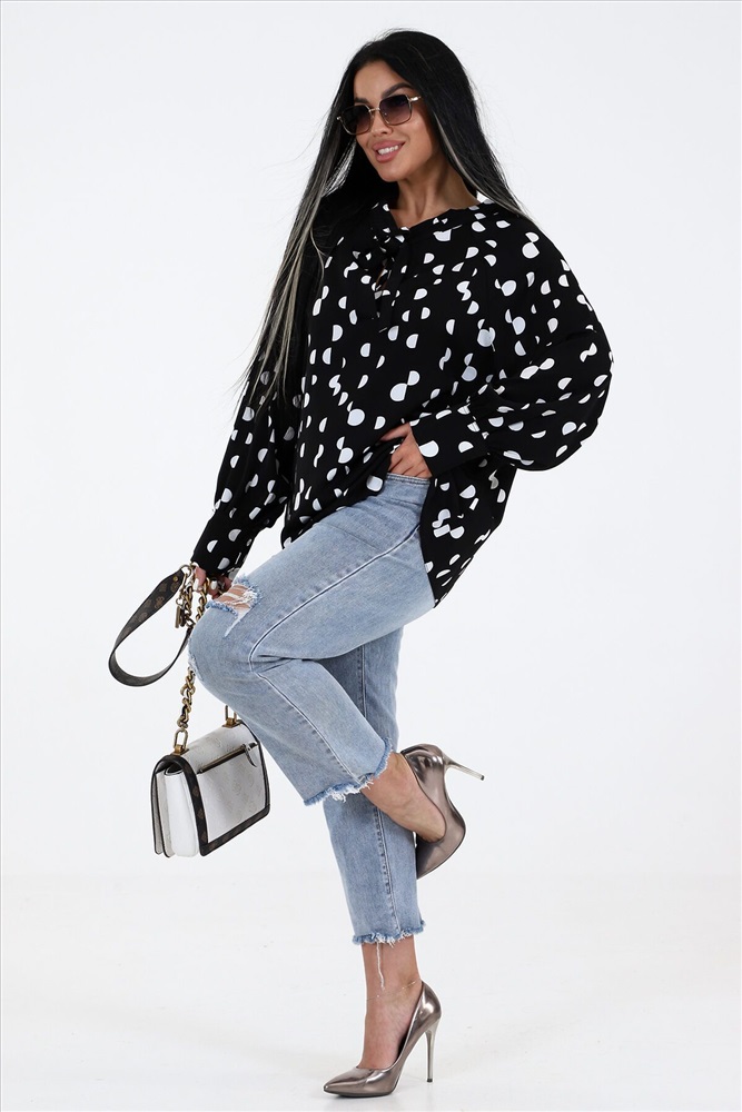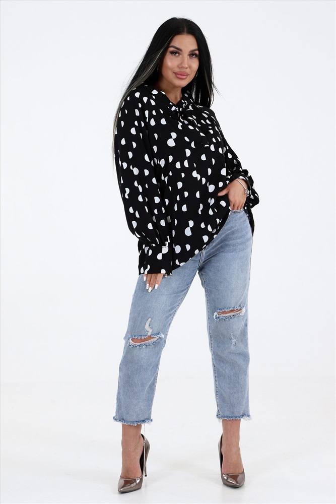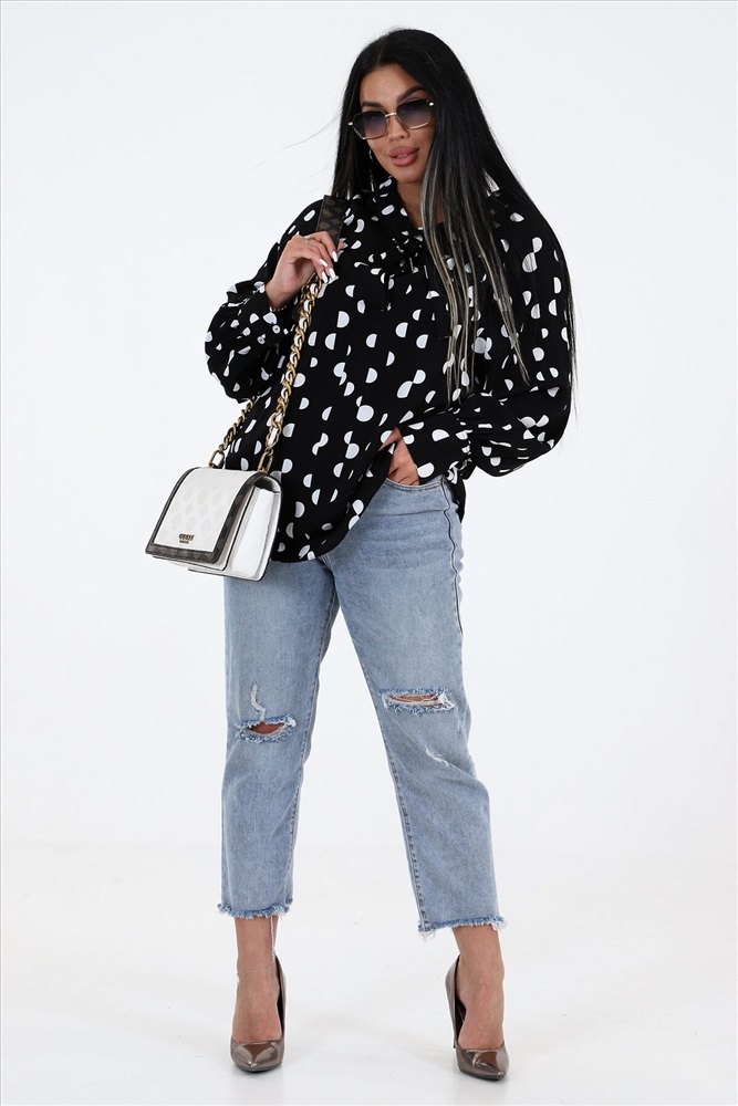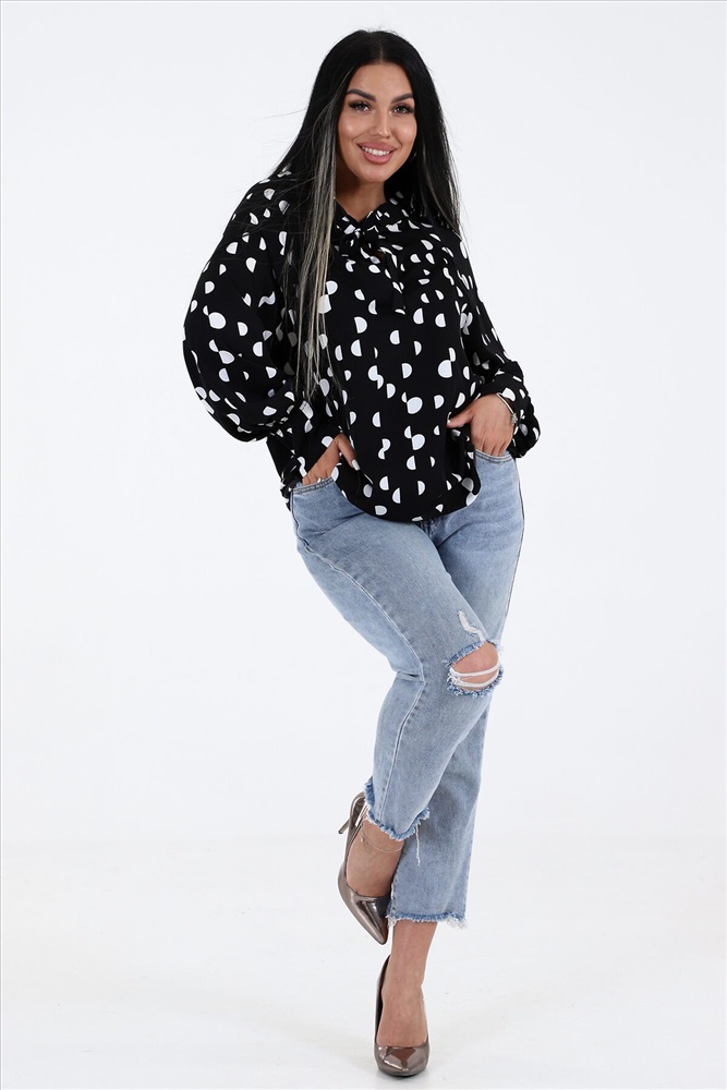 ID товара: 1092544 Состав: 90% Полиэстер; 10% Вискоза Сезон: Демисезон Длина: Средняя Фасон: Свободный Рукав: длинные Вырез горловины: Воротник в виде банта Рисунок: Горох Декоративные элементы: Принт Основная ткань: Полиэстер Стиль: классический Вид ткани: Суперсофт Страна бренда: Россия Страна производства: Россия Женская туника из материала софт с оригинальным воротником-стойкой, который затягивается на ленту, представляет собой идеальный выбор для стильных и модных женщин. Ее оверсайз покрой подчеркнет вашу индивидуальность, а длинные рукава на манжете в форме фонарика добавят неповторимости вашему образу. Великолепный рисунок в виде горошка делает эту тунику особенно привлекательной. Наша женская туника доступна в двух элегантных расцветках: черной и бежевой. Такое разнообразие позволяет вам выбрать наиболее подходящий вариант, который сочетается с вашим стилем и настроением. Более того, у нас в наличии широкий размерный ряд от 48 до 58, что позволяет найти идеальную посадку для любой фигуры. Приобретая нашу тунику, вы получаете не только превосходное качество и стильный дизайн, но и комфорт, которые будут сопровождать вас на протяжении всего дня Комментарии к товару