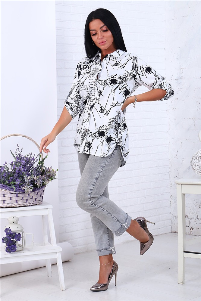 ID товара: 797762 Состав: 100% Хлопок Сезон: Весна/Лето Длина: Средняя Фасон: Прямой Рукав: 3/4 Вид застежки: Пуговицы Вырез горловины: Отложной воротничок Рисунок: Абстракция Декоративные элементы: Принт Основная ткань: Хлопок | Кулирка Стиль: Повседневный Страна бренда: Россия Страна производства: Россия Женская стильная туника - рубашка в стиле oversize выполнена из 100% хлопчатобумажного полотна в двух классических расцветках с нежным рисунком. Модель дополняет рубашечный воротник, паты и планка с расстёгивающимися пуговицами, делая её более удобной и комфортной. Стильная и современная рубашка будет универсальным видом одежды в гардеробе каждой женщины. Комментарии к товару
