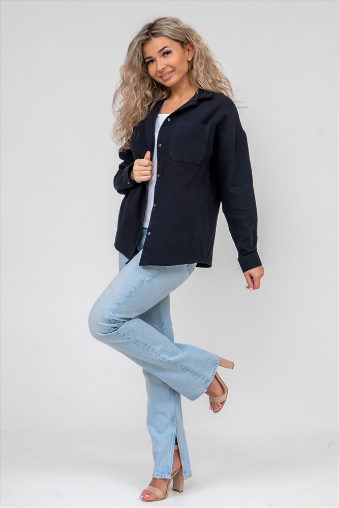 ID товара: 894488 Состав: 100% Хлопок Сезон: Весна/Лето Длина: Средняя Фасон: Свободный крой Рукав: длинные Вид застежки: Пуговицы Вырез горловины: Отложной воротник Основная ткань: Хлопок Стиль: Повседневный Вид ткани: Муслин Страна бренда: Россия Страна производства: Россия Модная рубашка в стиле oversize выполнена из воздушного и приятного к телу 2-х слойного жатого муслина. Это одна из самых модных и популярных моделей сезона. Рубашка имеет слегка удлинённую спинку, спущенную линию плечевого шва, классический рубашечный воротник, два накладных кармана, планку и манжеты на пуговках. А модные цвета этого лета и нежнейшая ткань добавляют законченность деталям и определяют must have сезона. За счёт свободного фасона рубашку можно носить с любым типом фигуры, отлично подойдёт для беременных женщин, а также кормящих мам. Женская хлопковая рубашка идеальна как для лета, так и для прохладного вечера. С помощью такой рубашки Вы можете создать деловой образ или летний расслабленный. А также отправиться на праздник или вечеринку, в школу или на прогулку, на пляж или провести незабываемый вечер дома. Модель такого плана идеально подойдёт и в качестве подарка для себя и своих любимых! Стирать муслиновые вещи нужно только в теплой воде при температуре не выше 40С. У нас Вы также можете приобрести шорты- модель 36631 и брюки - модель 36630 в едином стиле с рубашкой и создать свой неповторимый образ! Ориентируясь по таблице замеров, обратите внимание, что замеры длины рукава проводились от точки основания шеи. Комментарии к товару