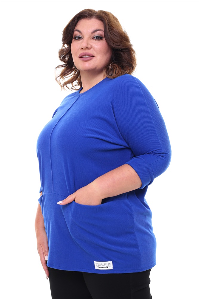 Туника "бочонок" со строчкой по центру с карманами электрик