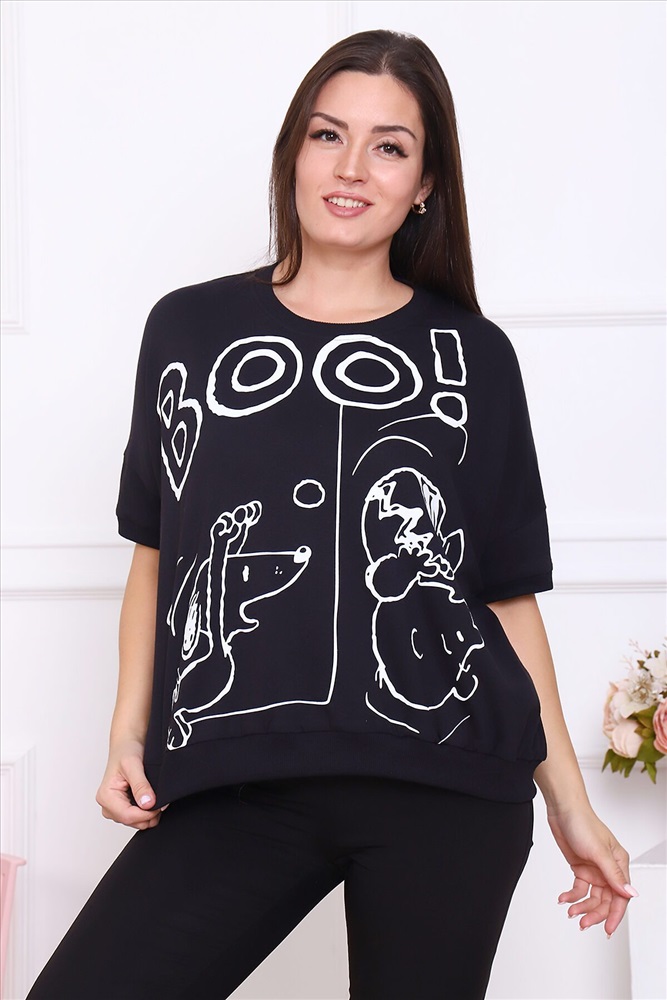 ID товара: 805853 Состав: 100% Хлопок Сезон: Весна/Лето Длина: Средняя Фасон: Свободный крой Рукав: Короткие Вырез горловины: Округлый Рисунок: Фантазийный Декоративные элементы: Принт Основная ткань: Хлопок | Кулирка Стиль: Повседневный Страна бренда: Россия Страна производства: Россия Туника свободного кроя "оверсайз" с прикольным принтом на полочке придется по вкусу большинству женщин независимо от возраста! Короткий, спущенный рукав. Горловина, рукава и низ изделия обработаны кашкорсе. Комментарии к товару