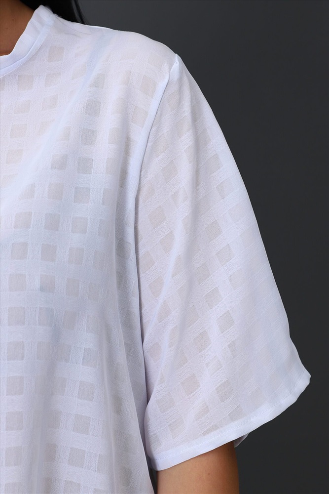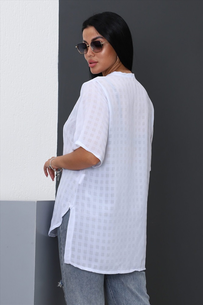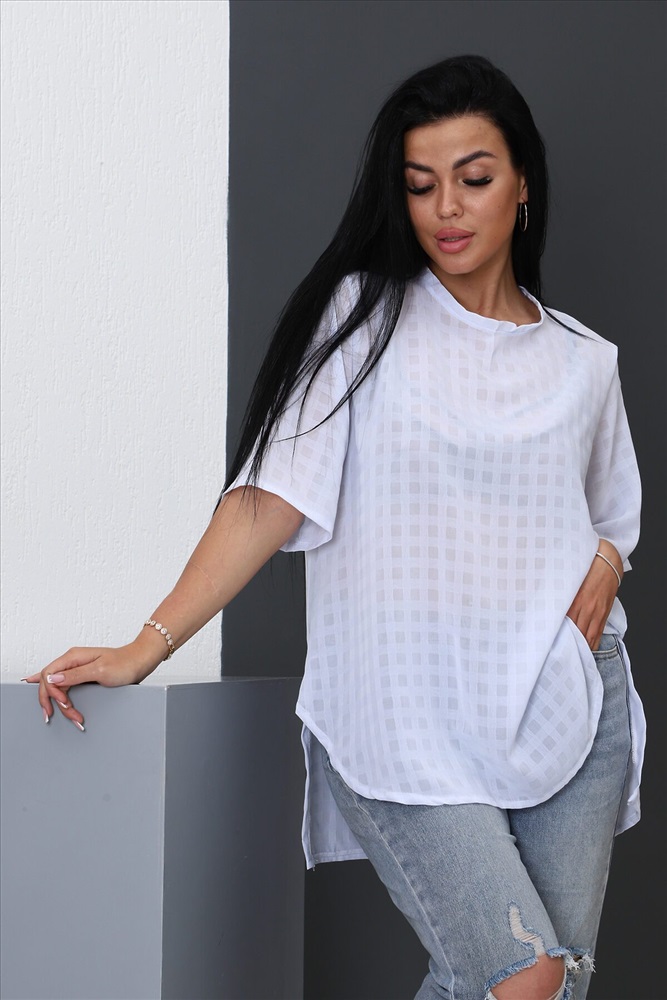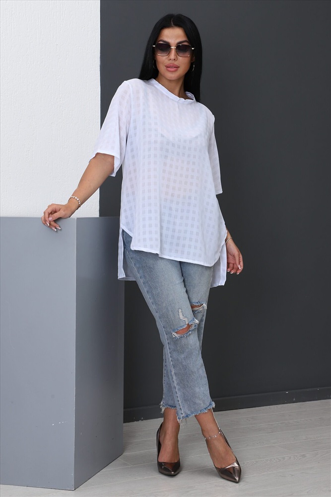 ID товара: 910089 Состав: 100% Полиэстер Сезон: Весна/Лето Длина: Удлиненная Фасон: Свободный крой Рукав: До локтя Вырез горловины: Округлый Декоративные элементы: Разрезы Основная ткань: Полиэстер Стиль: Повседневный Вид ткани: Шифон Страна бренда: Россия Страна производства: Россия Туника летняя женская, расклешенного типа, рукав 3/4,округлый воротник, задняя полочка длиннее передней. Легкая и удобная. Комментарии к товару