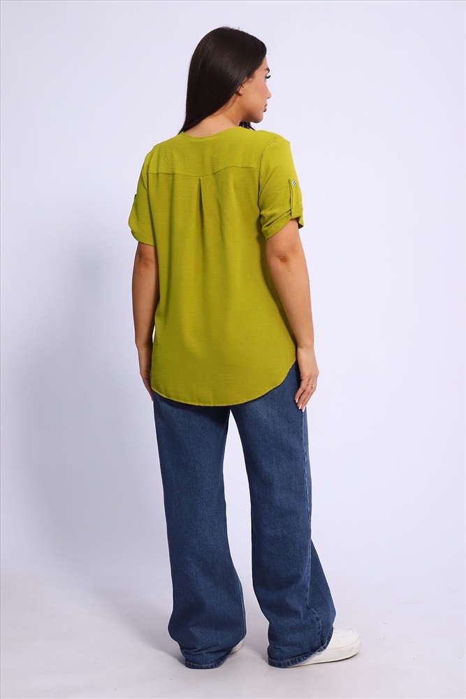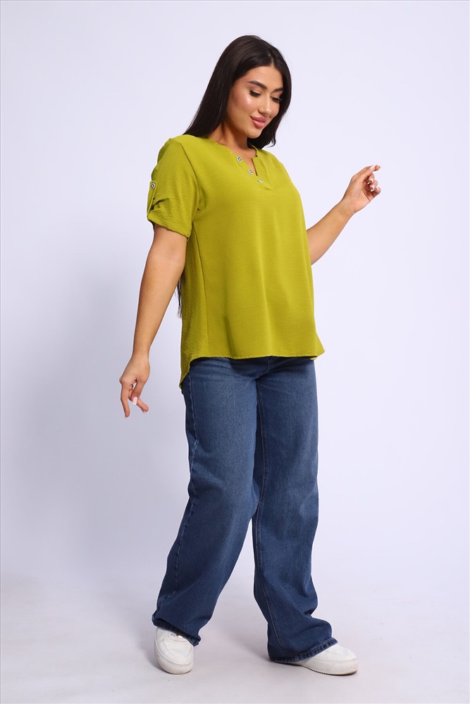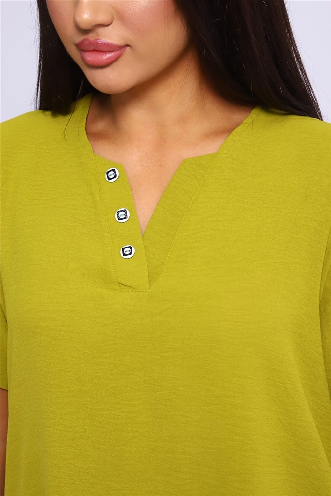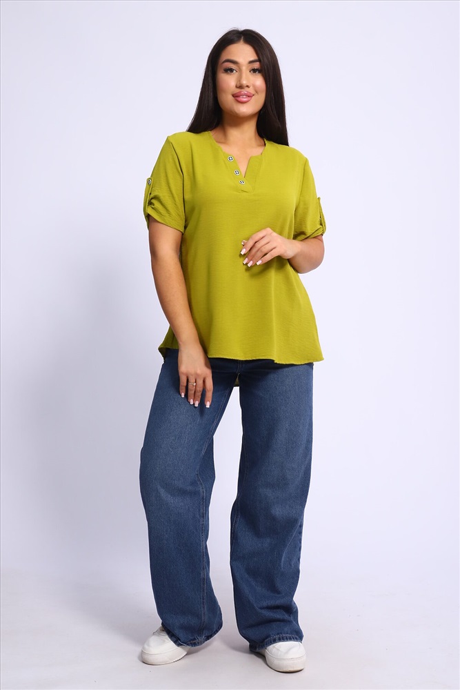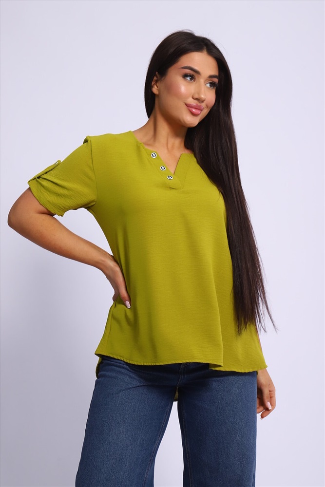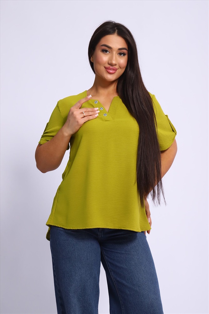 ID товара: 1004175 Состав: 100% Полиэстер Сезон: Весна/Лето Фасон: Свободный крой Рукав: Короткий Вырез горловины: V-образный Вид ткани: Сингапур Страна бренда: Россия Страна производства: Россия Туника парные размеры из сингапура три цвета декор пуговицы на планках на горловине и на рукавах. Комментарии к товару