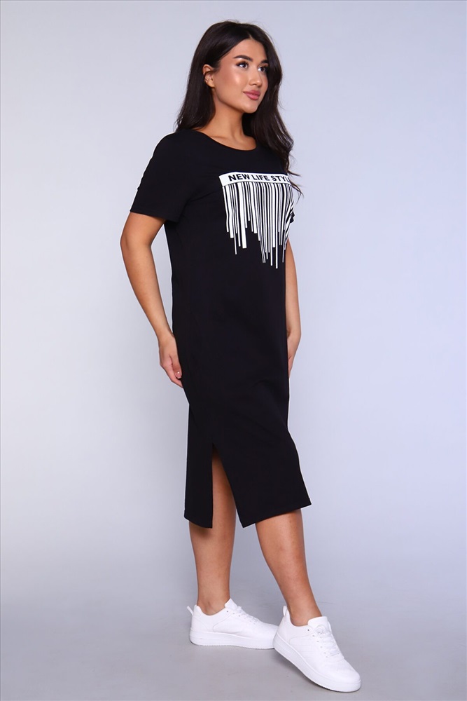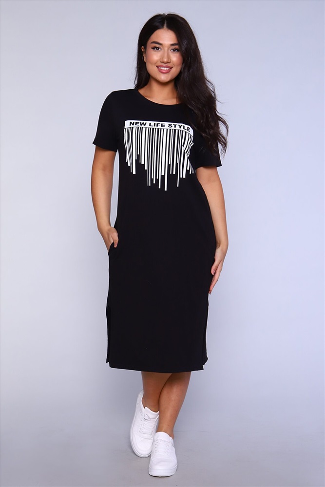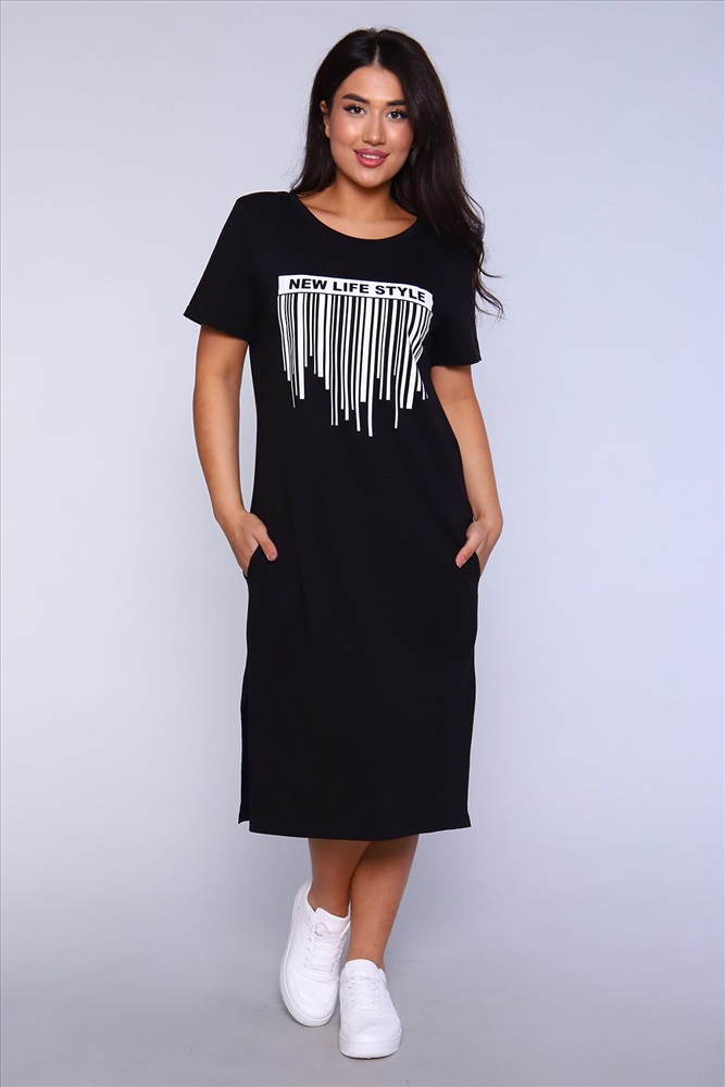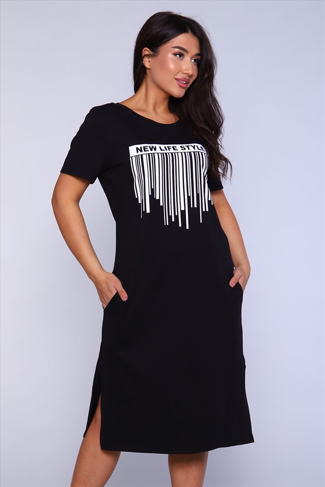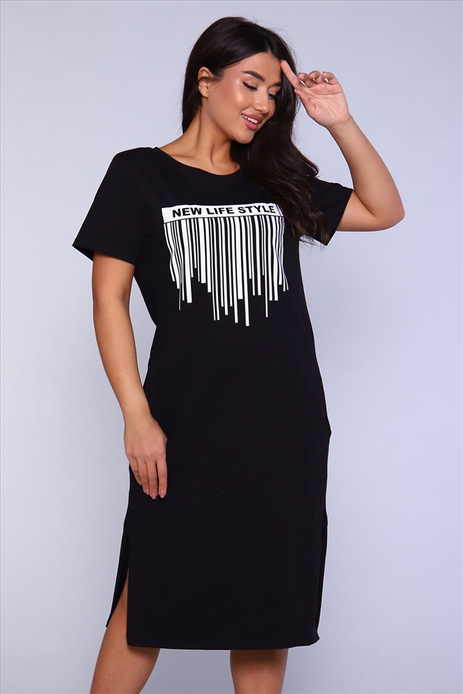 Производитель: НАТАЛИ ID товара: 891269 Состав: 100% Хлопок Сезон: Весна/Лето Длина: Миди Фасон: Прямое Рукав: короткие Вырез горловины: Округлый Рисунок: Надпись Тип карманов: В шве Декоративные элементы: Разрезы Основная ткань: Хлопок Стиль: повседневный Вид ткани: Кулирка Страна бренда: Россия Страна производства: Россия