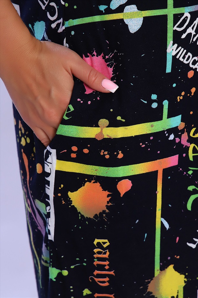 Туника полуприлегающего силуэта с короткими рукавами на спущенном плече. Разрезы и карманы в боковых швах. Комфортна для повседневной носки.