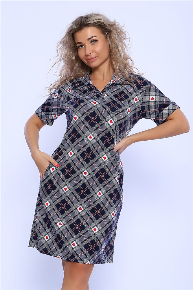 Туника полуприлегающего силуэта с короткими рукавами на манжетах и рубашечным воротником. Карманы в боковых швах. Неотъемлемый элемент домашнего гардероба.
