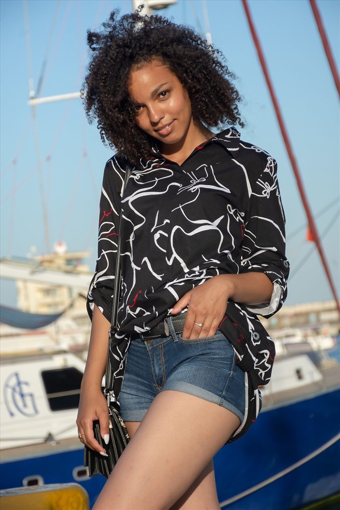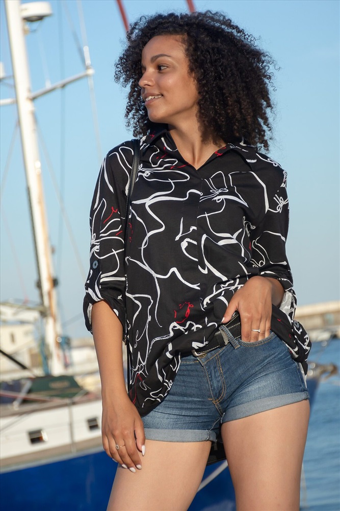 ID товара: 284850 Состав: Хлопок 100% Сезон: Весна/Лето Длина: Удлиненная Фасон: Прямой Рукав: 3/4 Вид застежки: Пуговицы Вырез горловины: Отложной воротник Рисунок: Абстракция Тип карманов: Без карманов Декоративные элементы: Печатный принт Основная ткань: Хлопок | Кулирка, Кулирка — это самое тонкое и гладкое трикотажное полотно, изготовленное из чистого хлопка. Полотно имеет характерную структуру- с лицевой стороны плоские «косички», с изнаночной – «кирпичная кладка». Особенности- гигроскопична, воздухопроницаема, при стирке, сушке и глажке не садится, хорошо держит форму, не образует складки. Стиль: Повседневный Страна бренда: Россия Страна производства: Россия Туника свободного кроя выполнена из 100% хлопчатобумажного полотна в 2-х цветах. В белом - являющемся dress code 2021 г. и в чёрном - классика, элегантность и универсальность. Ко всему к этому модель дополняет рубашечный воротник, планка и паты закреплённые на рукавах и по низу изделия декоративными пуговицами. Туника рубашечного типа является одним из самых универсальных видов одежды для женщин, удобно сочетающаяся с другими видами гардероба. Комментарии к товару