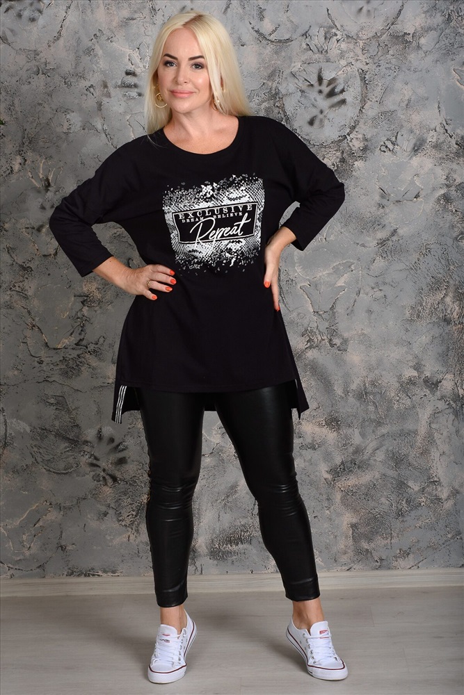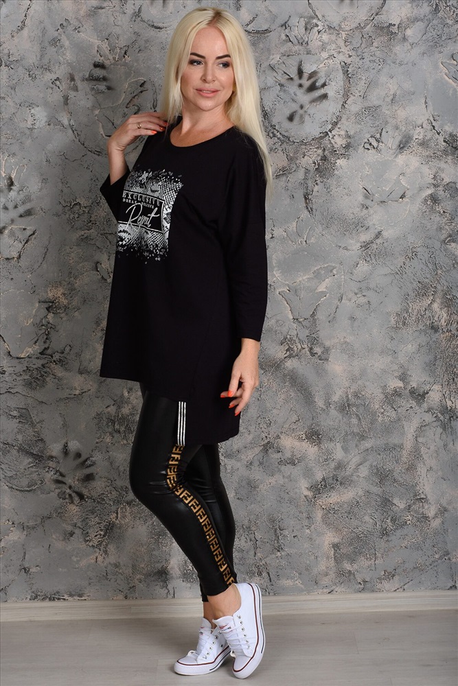 ID товара: 279531 Состав: 100% Хлопок. Сезон: Весна/Лето Длина: длина до колен Фасон: Прямой Рукав: Длинный Вырез горловины: Круглый Рисунок: Надпись Основная ткань: Хлопок | Кулирка, Кулирка — это самое тонкое и гладкое трикотажное полотно, изготовленное из чистого хлопка. Полотно имеет характерную структуру- с лицевой стороны плоские «косички», с изнаночной – «кирпичная кладка». Особенности- гигроскопична, воздухопроницаема, при стирке, сушке и глажке не садится, хорошо держит форму, не образует складки. Стиль: Повседневный Страна бренда: Россия Страна производства: Россия Туника женская. На полочке принт. По низу изделия отделка – тесьма. Комментарии к товару