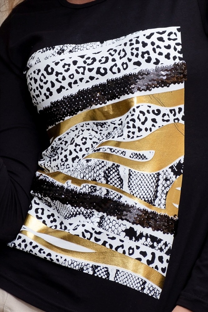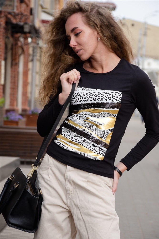 ID товара: 280565 Состав: Хлопок 95%, Лайкра 5%. Сезон: Весна/Лето Длина: Средняя Фасон: Полуприталенный Рукав: Длинный Вырез горловины: Круглый Рисунок: животные, леопардовый Основная ткань: Хлопок | Кулирка с лайкрой пенье, Кулирка с лайкрой пенье — стрейч-кулирка, выполненная из самых лучших и длинных нитей. В остальном идентичная кулирке с лайкрой. Особенности- эластичность, гипоаллергенность, гигроскопичность, возможна усадка при стирке. Стиль: Повседневный Страна бренда: Россия Страна производства: Россия Туника полуприлегающего силуэта, с округлой горловиной, длиной до середины бедра. Рукав втачной, длинный. Горловина обработана бейкой из основного полотна. На полочке большая красивая печать с золотым или серебряным глиттером, декорированная пайетками Комментарии к товару