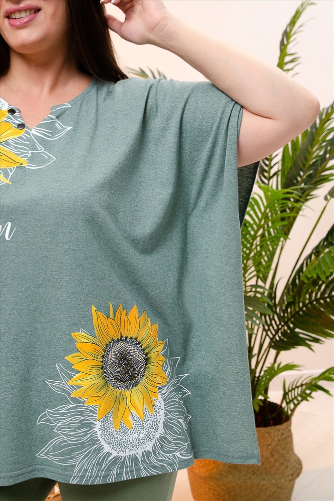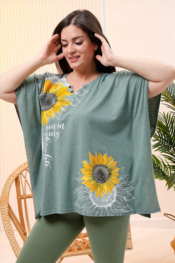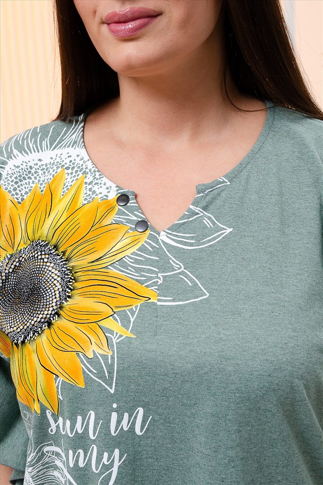 ID товара: 902893 Состав: Полиэстер 57%, Хлопок 43% Сезон: Весна/Лето Длина: Средняя Фасон: Свободный крой Рукав: короткие Вырез горловины: V-образный Рисунок: цветочный Декоративные элементы: Кнопки Основная ткань: Полиэстер Стиль: повседневный Вид ткани: Кулирка Страна бренда: Россия Страна производства: Россия Летняя туника свободного прямоугольного кроя с ярким принтом. Ткань модели мягко обнимает, создавая легкие рукава, ниспадающие красивыми складками. Оригинальный фасон туники позволяет чувствовать себя комфортно в жаркие летние дни. Комментарии к товару
