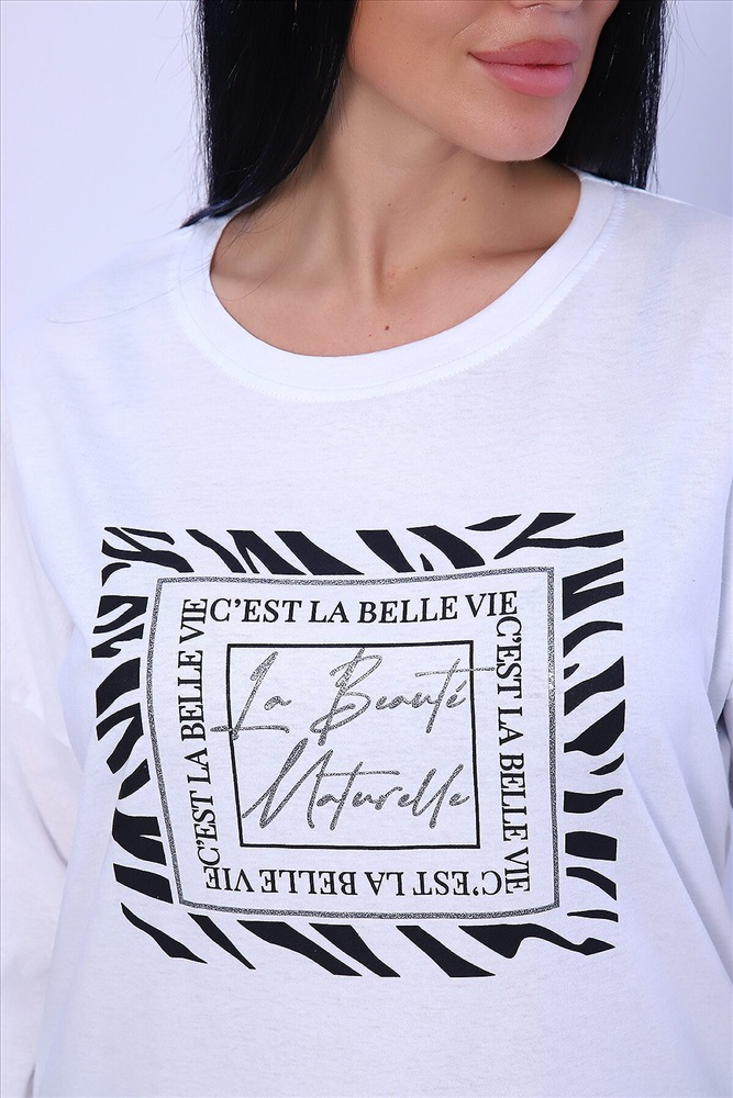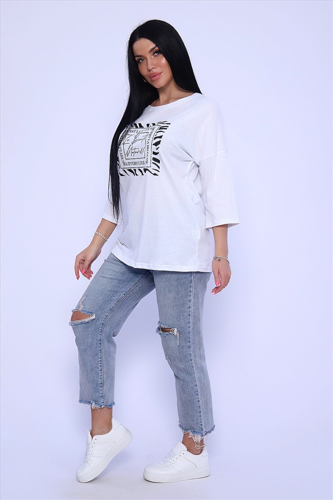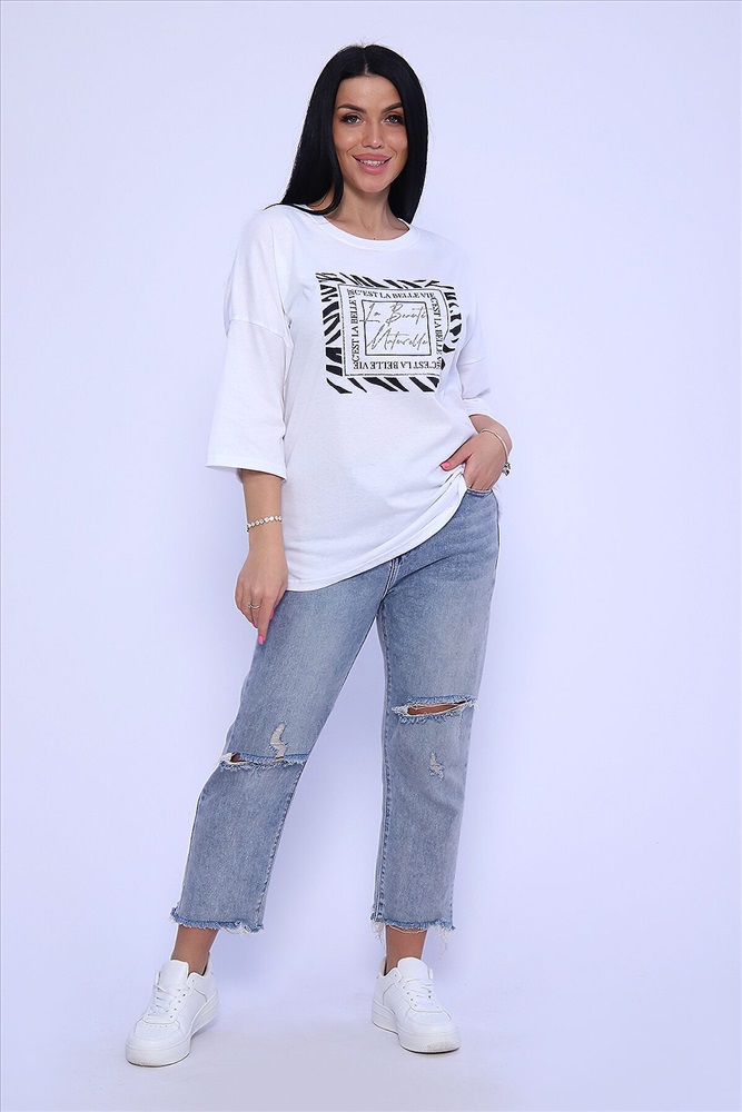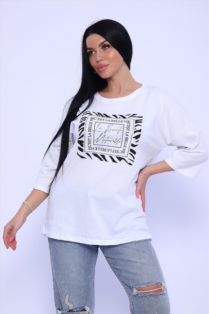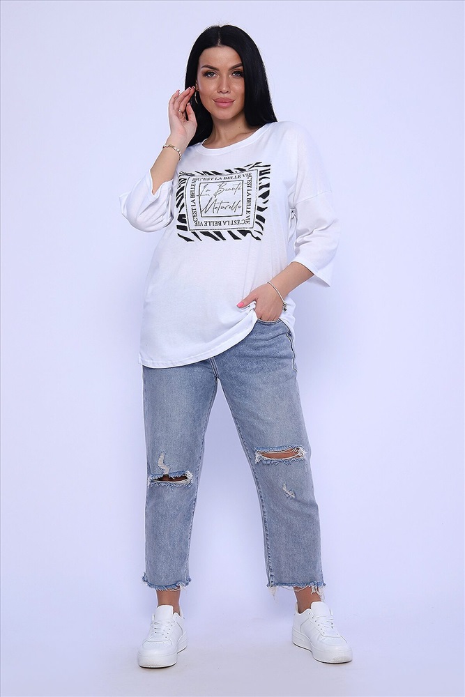 Туника из натурального хлопка прекрасный вариант для повседневного образа. Оригинальный принт с использованием глиттера и техники объёмной печати украшает модель, придавая ей изысканный вид. Обработка деталей вкруговую с закрепкой, рукав длиной 3/4, горловина втачная из основной ткани. Большие размеры!