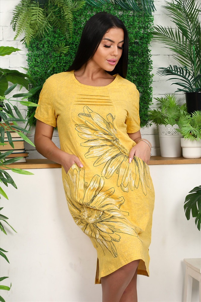 ID товара: 778034 Состав: Хлопок 100% Сезон: Весна/Лето Длина: прикрывает колено Фасон: Прямой Рукав: Короткий Вид застежки: Без застежки Вырез горловины: Округлый Рисунок: цветочный Тип карманов: В шве Декоративные элементы: Разрезы Основная ткань: 100% хлопок | Кулирка Стиль: Повседневный Страна бренда: Россия Страна производства: Россия Туника полуприлегающего силуэта, средней длины, с округлой горловиной. Рукав реглан, короткий, украшен декоративными защипами. Обработаны карманы в рельефных швах полочки. Горловина и низ рукавов обработан бейкой из основного полотна. Комментарии к товару