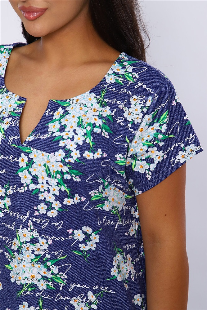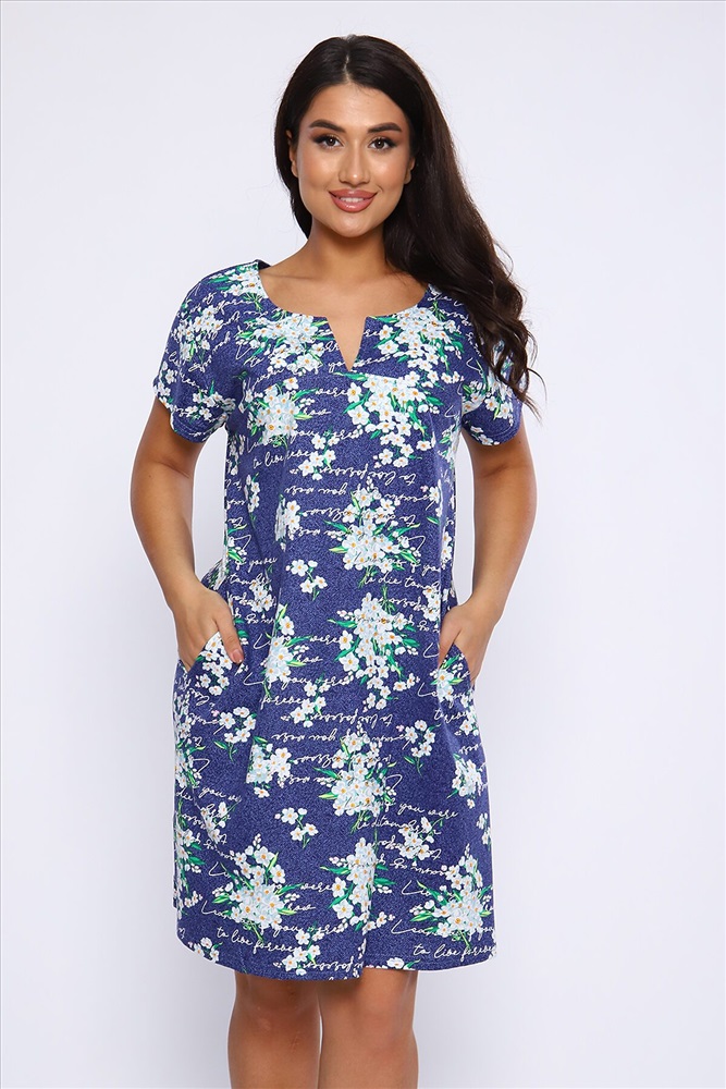 ID товара: 893315 Состав: 100% Хлопок Сезон: Весна/Лето Длина: Удлиненная Фасон: Свободный крой Рукав: короткие Вырез горловины: Фигурный вырез Рисунок: цветочный Тип карманов: В боковом шве Основная ткань: Хлопок Стиль: Повседневный Вид ткани: Кулирка Страна бренда: Россия Страна производства: Россия Женская туника из хлопковой ткани с красивой расцветкой. На полочке кокетка с разрезом, который очень интересно смотрится. По боковому шву карман, рукав короткий. Туника прекрасно подойдет для дома, дачи и отдыха. Комментарии к товару
