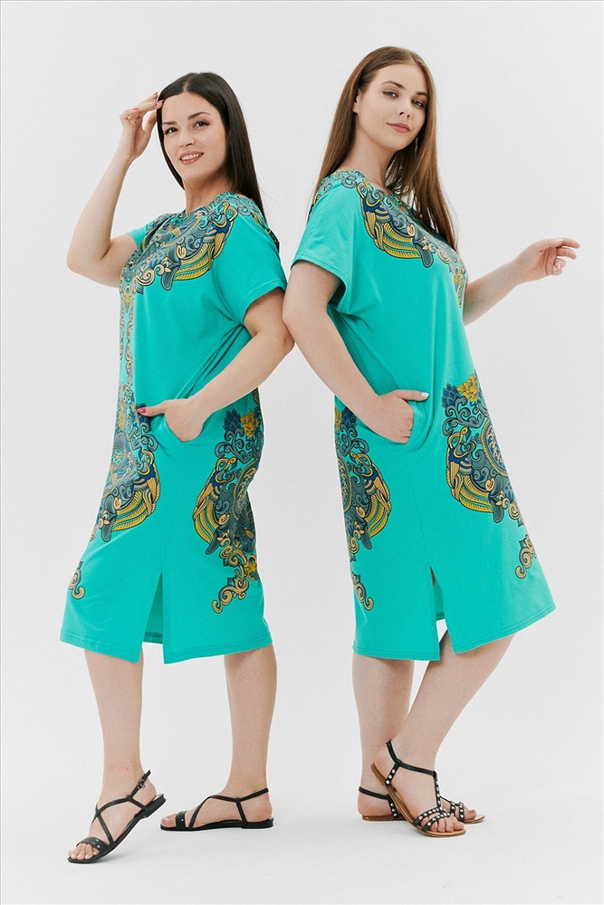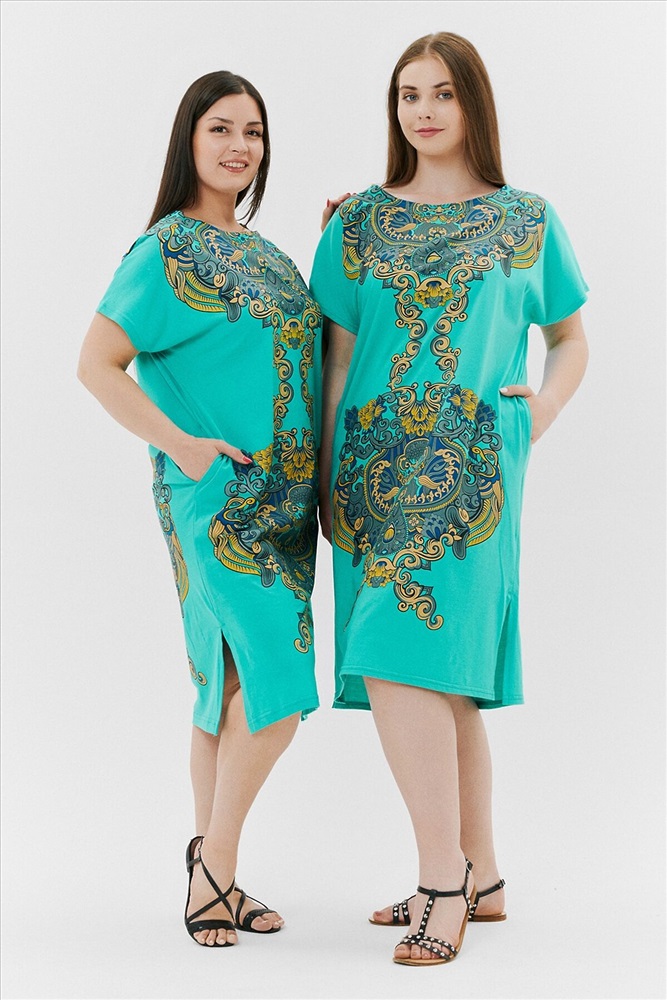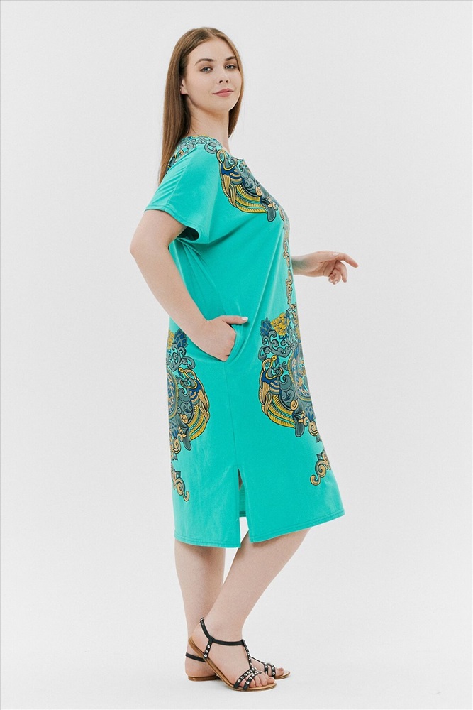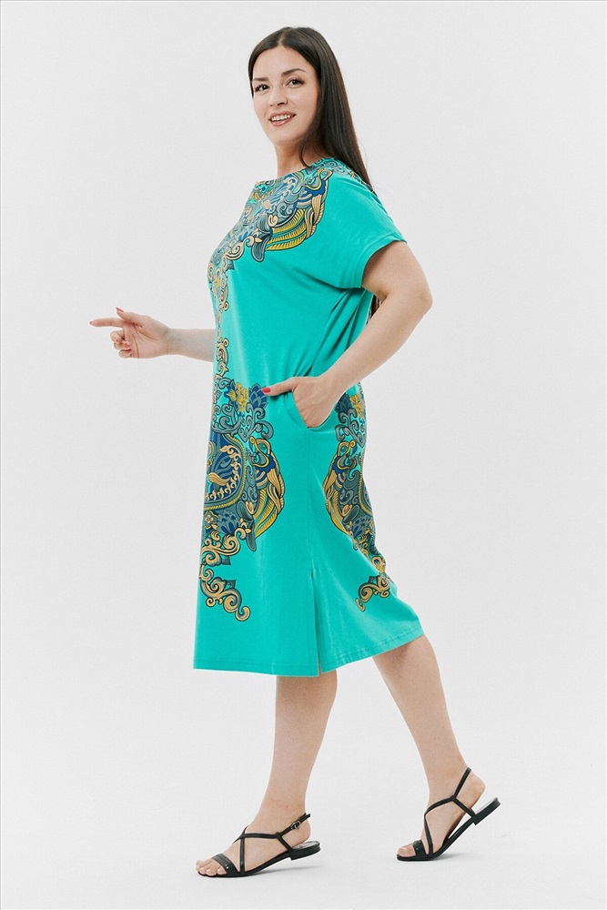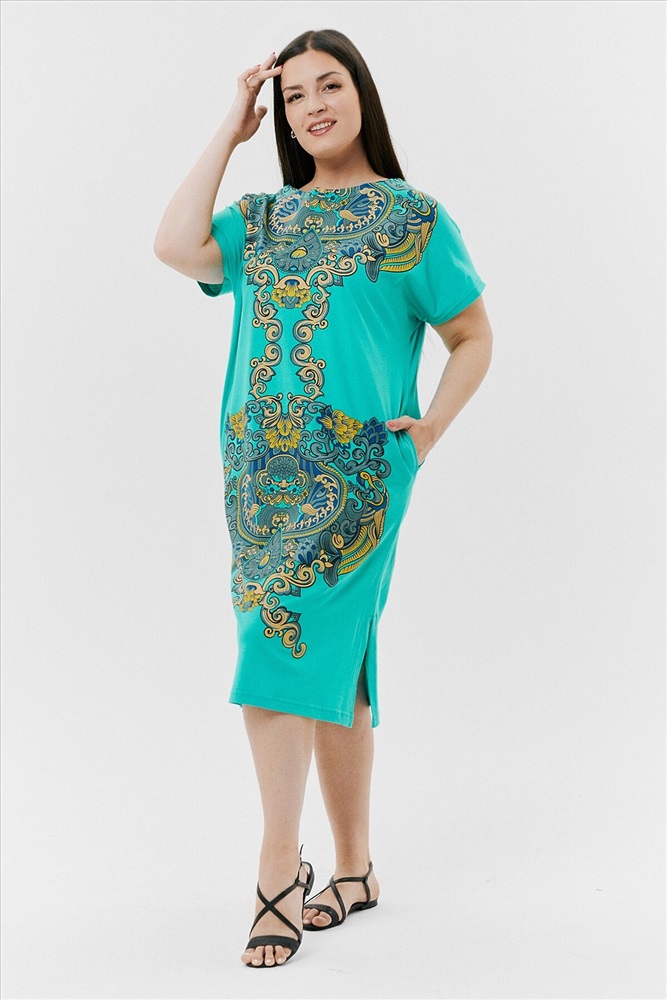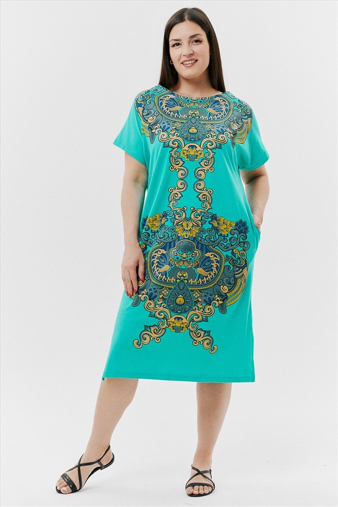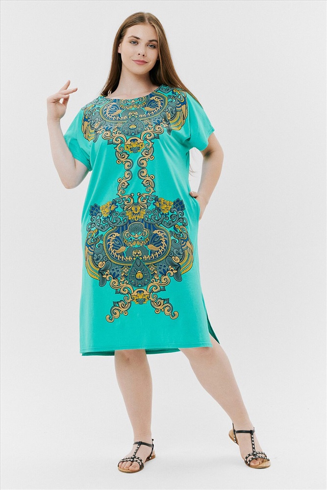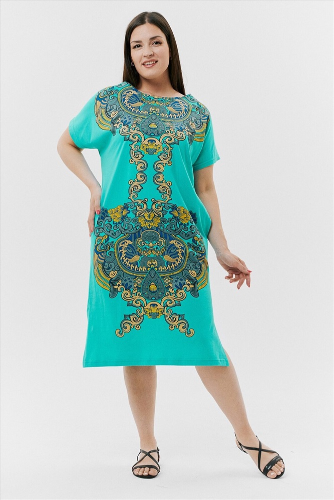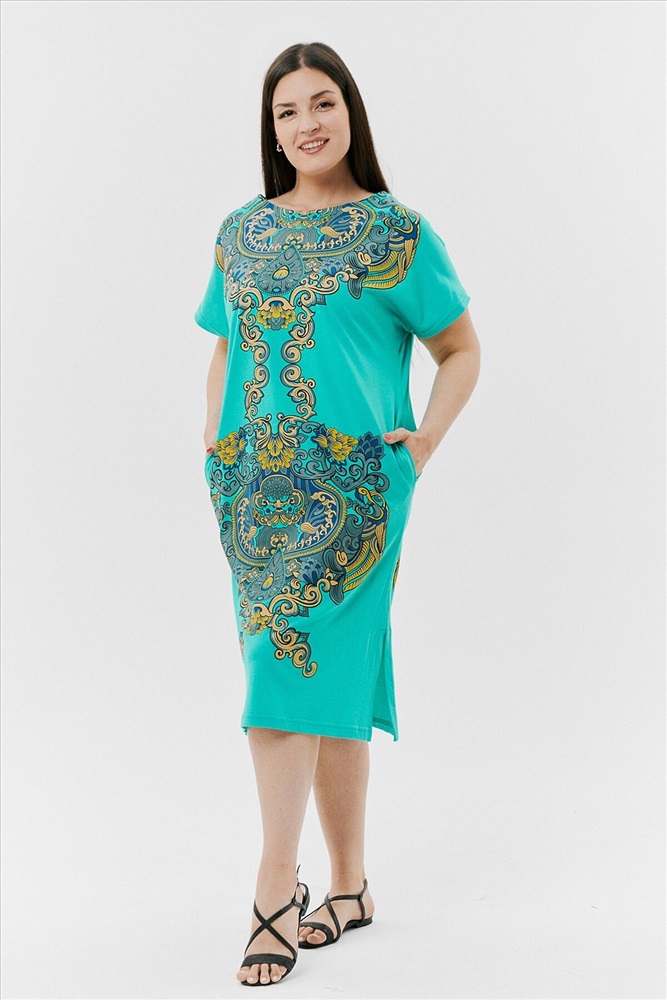 Производитель: НАТАЛИ ID товара: 792164 Состав: Хлопок 100% Сезон: Весна/Лето Длина: Ниже колена Фасон: Прямой Рукав: Короткие Вырез горловины: Округлый Рисунок: Узор Тип карманов: В шве Декоративные элементы: Разрезы Основная ткань: Хлопок | Кулирка Стиль: Повседневный Страна бренда: Россия Страна производства: Россия