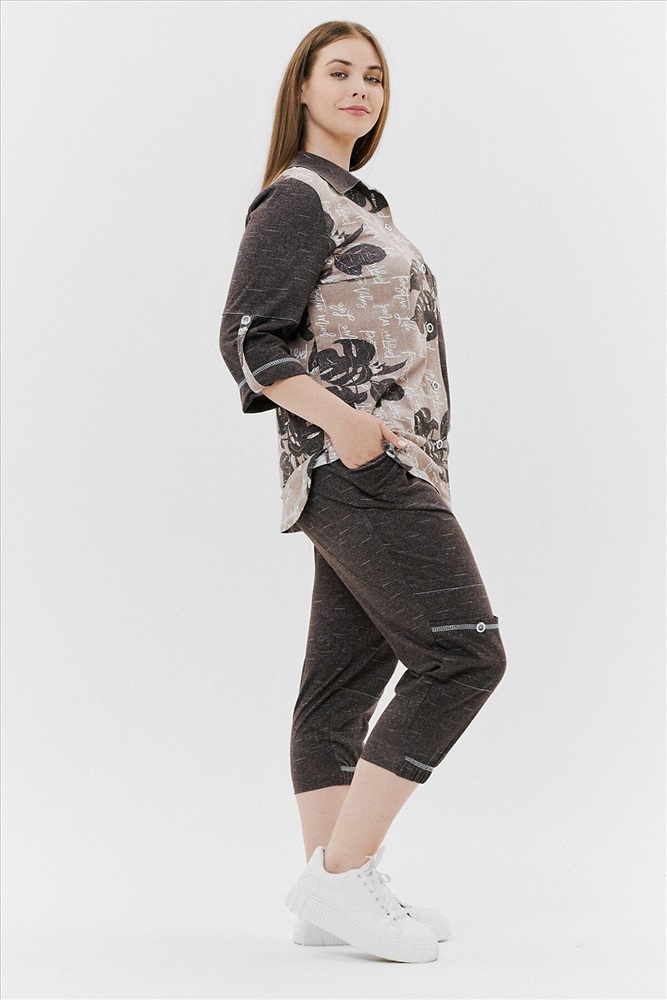 ID товара: 791424 Состав: Хлопок 100% Сезон: Весна/Лето Длина: Средняя Фасон: Прямой Рукав: 3/4 Вид застежки: Пуговицы Вырез горловины: Отложной воротничок Рисунок: растительный Тип карманов: накладной Декоративные элементы: Паты Основная ткань: Хлопок | Кулирка Стиль: Повседневная Страна бренда: Россия Страна производства: Россия Туника женская прямого силуэта с отложным воротником. Застежка на петли-пуговицы. Рукав втачной, длина 3/4 с манжетой и хлястом. Низ туники фигурный, спинка несколько длиннее полочки. На полочке нагрудный карман. Комментарии к товару