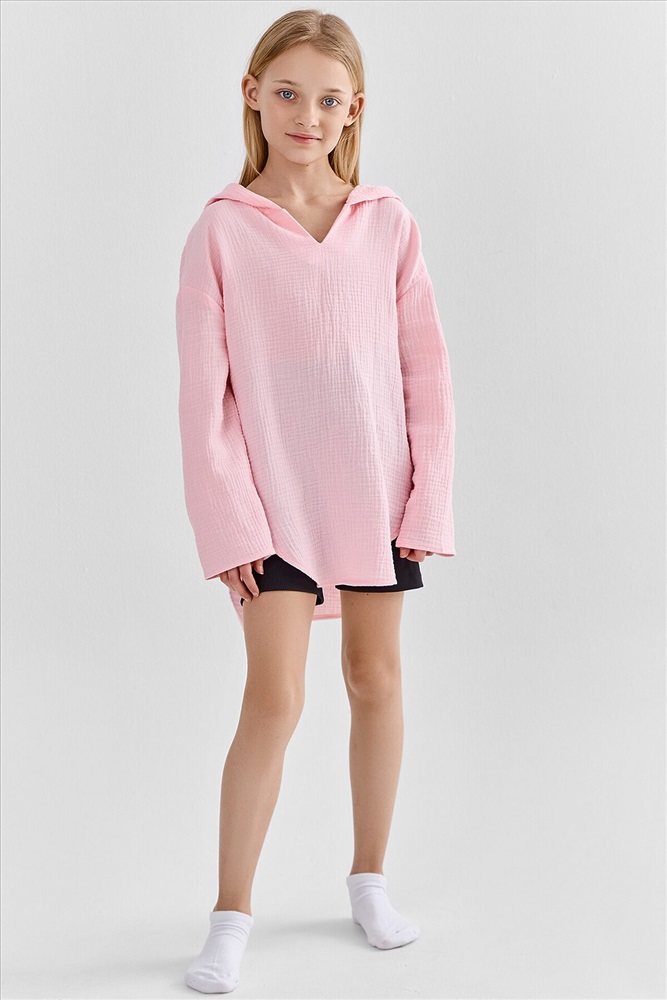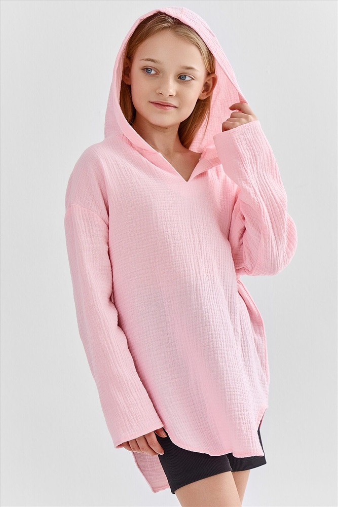 ID товара: 1242235 Состав: 100% хлопок Сезон: Весна/Лето Рукав: длинные Вид застежки: Без застежки Вырез горловины: V-образный Тип карманов: Без карманов Декоративные элементы: Без элементов Утеплитель: Без утепления Уход: Деликатная стирка при 30 градусах Фактура материала: Тканое полотно Страна бренда: Беларусь Страна производства: Китай Туника для девочек свободного силуэта с капюшоном, выполнена из муслина. Горловина V-образная. Длина - ниже бедра. Спинка удлиненная. Рукава длинные втачные, линия плеча спущена. Низ изделия и рукавов обработаны в подгибку. Комментарии к товару