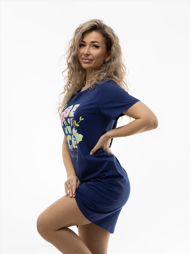 Артикул: НФ-00224878 Цвет: Синий Бренд: Текс-плюс Состав материала: 100% Хлопок Материал: Кулирка Для: Женщин Вид изделия: Туники Плотность материала: 145 г/м2 Код товара: НФ-00224878 Туника женская, длиной выше уровня колена, выполненная из мягкого, приятного к телу трикотажного полотна. Платье имеет короткий втачной рукав и округлую горловину. На передней части красивый печатный рисунок. Комментарии к товару
