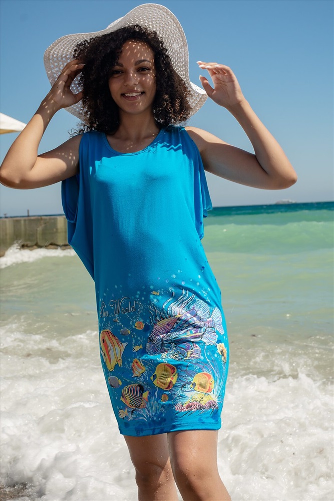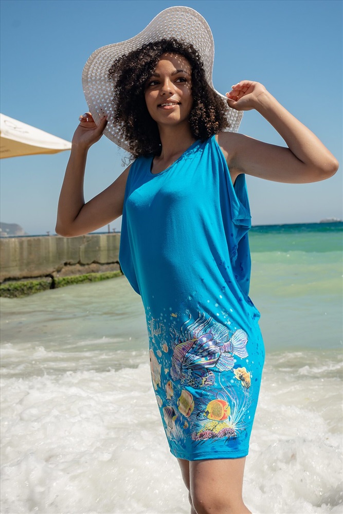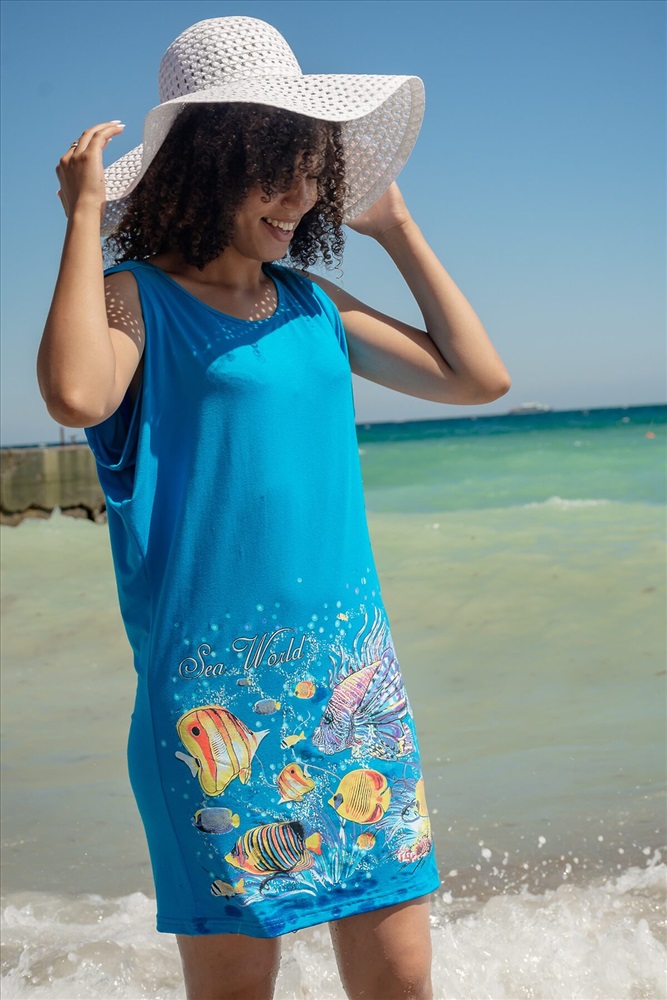 ID товара: 781320 Состав: 95% Вискоза, 5% Лайкра Сезон: Весна/Лето Длина: Мини Фасон: Полуприлегающий Рукав: Без рукавов Декоративные элементы: Печатный принт Основная ткань: Вискоза Стиль: Повседневный Страна бренда: Россия Страна производства: Россия Свободная туника из вискозы. Принт в виде тропических рыбок, длина до середины бедра, рукава отсутствуют Комментарии к товару