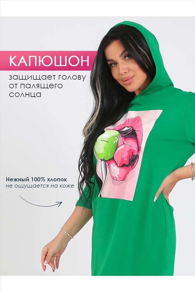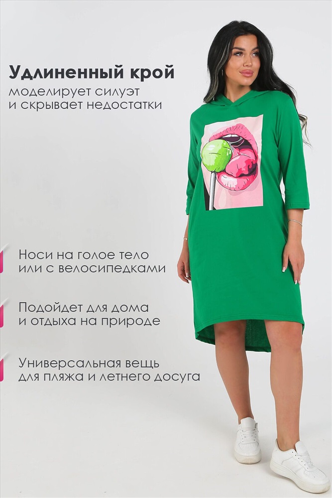 ID товара: 1086628 Состав: Хлопок 100% Сезон: Весна/Лето Длина: До колена Фасон: Прямой Рукав: 3/4 Рисунок: Фантазийный Основная ткань: Хлопок Стиль: Спортивный Вид ткани: Кулирка Страна бренда: Россия Страна производства: Россия Вот она идеальная модная женская одежда для дома, лета и не только! Хотите добавить стильный акцент в свой гардероб, который недорого можно купить? Тогда наша женская туника идеально подойдет для вас! Эта длинная трикотажная платье-туника с капюшоном из 100% хлопка от бренда Iren Renetti. Доступна в больших размерах будет идеальна девушкам и женщинам с низким, средним и высоким ростом. Эта удлиненная туника может использоваться как нарядная, офисная, домашняя и пляжная одежда. В ней вы можете сходить на повседневную прогулку, как в сарафане, либо подарить в подарок на новый год, день рождения, 8 марта или на юбилей. А в дни летних прогулок вы можете ее надеть на отдых, пляж или на дачу и использовать как накидку на купальник. Она идеально сочетается с лосинами как футболка, делая ее стильным выбором для любого повода, праздника и сезона. Свободный оверсайз крой и оптимальная длина делает ее комфортной и удобной для беременных женщин, позволяя носить ее, как короткий халат. А длинный рукав и капюшон делают платье теплым для осенних дней. С ее помощью вы легко создадите разнообразные образы: от свободной блузы до офисной рубашки. Комментарии к товару