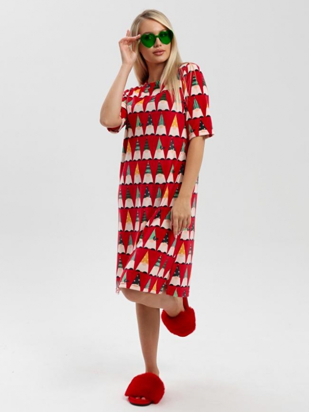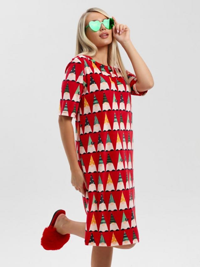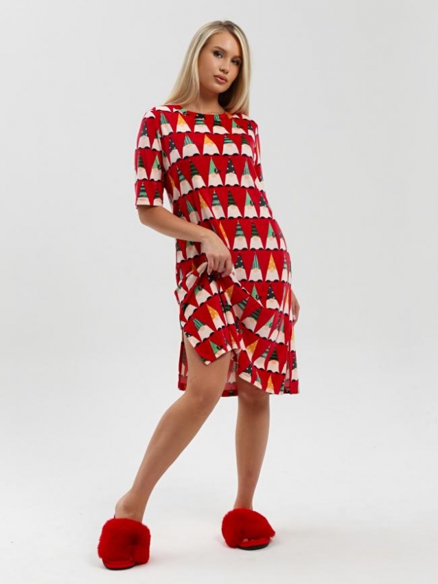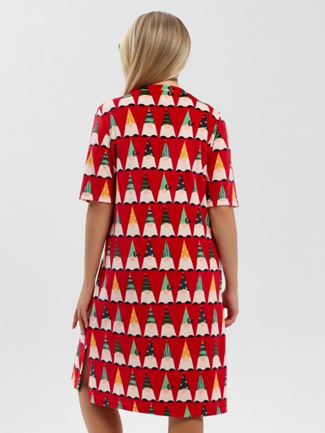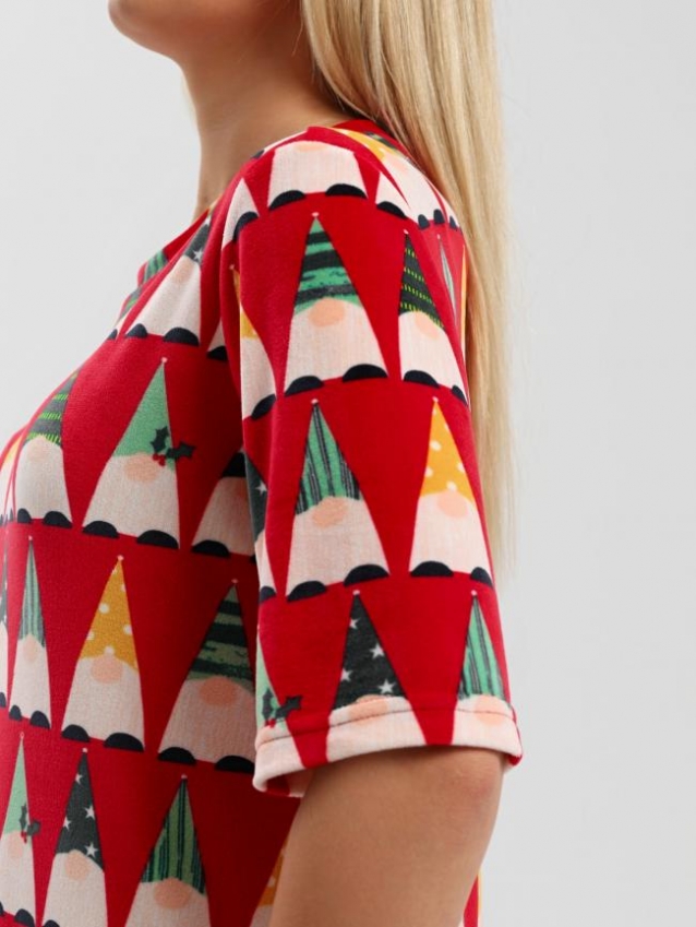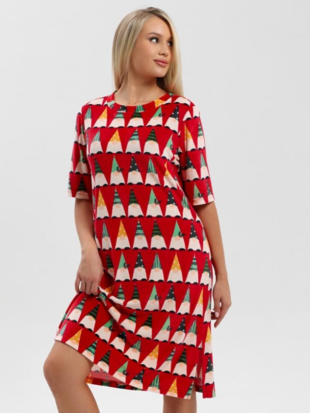 Туника молодежная из трикотажного полотна «велюр стрейч» с набивным рисунком, свободного покроя, с короткими втачными рукавами, горловиной овальной формы, обработанной втачной планкой и разрезами в боковых швах.